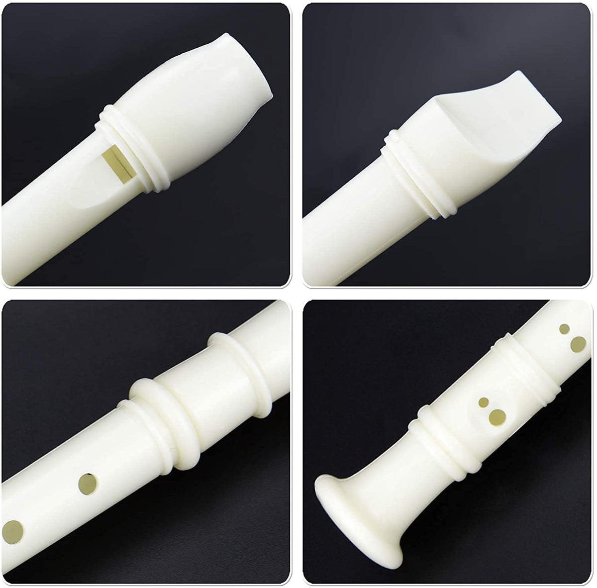 ?Specifications: ? Material: Abs Color: White/Pink/Blue Length: 30Cm/11.8Inch Type: German Tone: C Quantity: 6Pcs ?Correct Playing Posture? 1.The Left Hand Is Up, The Right Hand Is Down, The Thumb Of The Left Hand Blocks The Back Hole Of The Soprano Recorder. 2.The Names Of The Sound Holes On The Front Of The Soprano Recorder Are 1, 2, 3, 4, 5, 6, And 7 Holes From Top To Bottom. 3.The Second, Third, And Fourth Fingers Of The Left Hand Block The Holes 1, 2, And 3 Of The Soprano Recorder, The Thumb Of The Right Hand Is Placed On The Underside Of The Soprano Recorder To Stabilize The Soprano Recorder, And The Rest Of The Fingers Block The Remaining Notes Of The Soprano Recorder In Turn Hole. 4.The Standard Recorder Is With Only 8 Sound Holes, And All The Semitones Within 2 And A Half Octaves Can Be Obtained By Different Combinations Of The Holes.Note: This Recorder Is Intended For Ages 15 Years And Older.