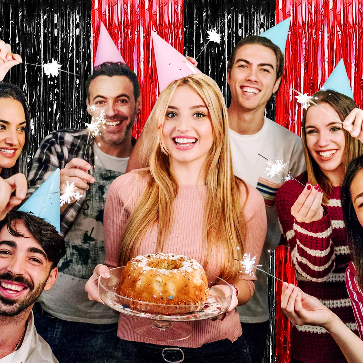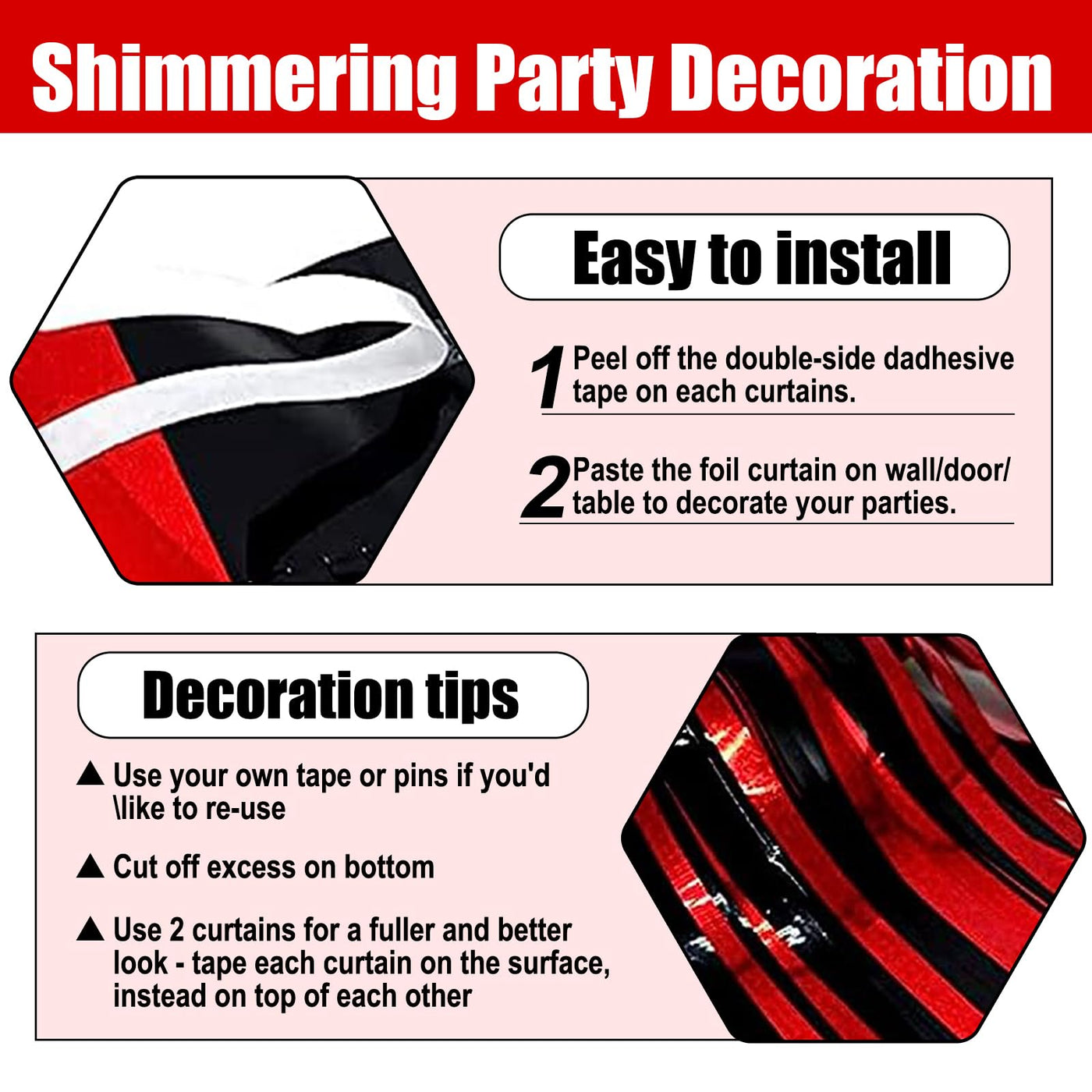 6 Pack Black Red Foil Fringe Curtain Backdrop, 3.28Ft X 8.2Ft Metallic Tinsel Foil Fringe Streamer Curtains For Photo Booth, Bir