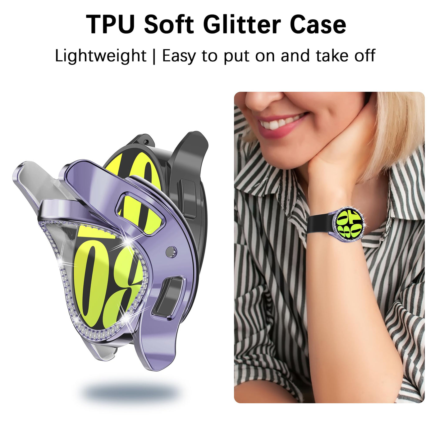 6 Pack Bling Watch Screen Protector For Samsung Galaxy Watch6 44Mm, Glitter Case Tpu Soft Cover Full Protection With Crystal Rhi