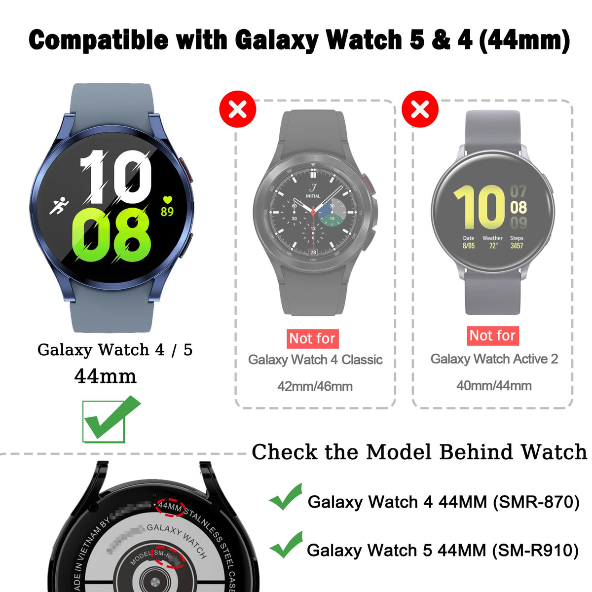 Compatible Model: Compatible With Samsung Galaxy Watch 5 And 4 (40Mm 44Mm) 2022 2021 Please Check Your Device Model Before Place Order, It Cana T Suit For Other Model And Brand