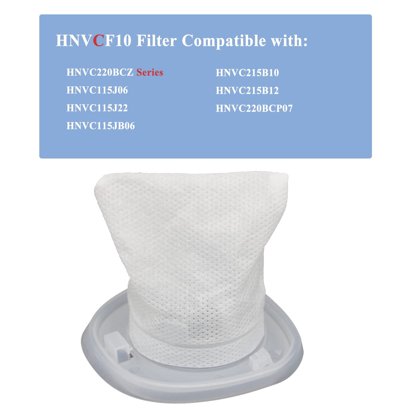 Q: Are the HNVCF10 filters washable and reusable?A: Yes, the HNVCF10 filters are washable and reusable. You can simply wash them and reinstall after drying, which helps maintain the suction power of your vacuum and prolongs its lifespan.