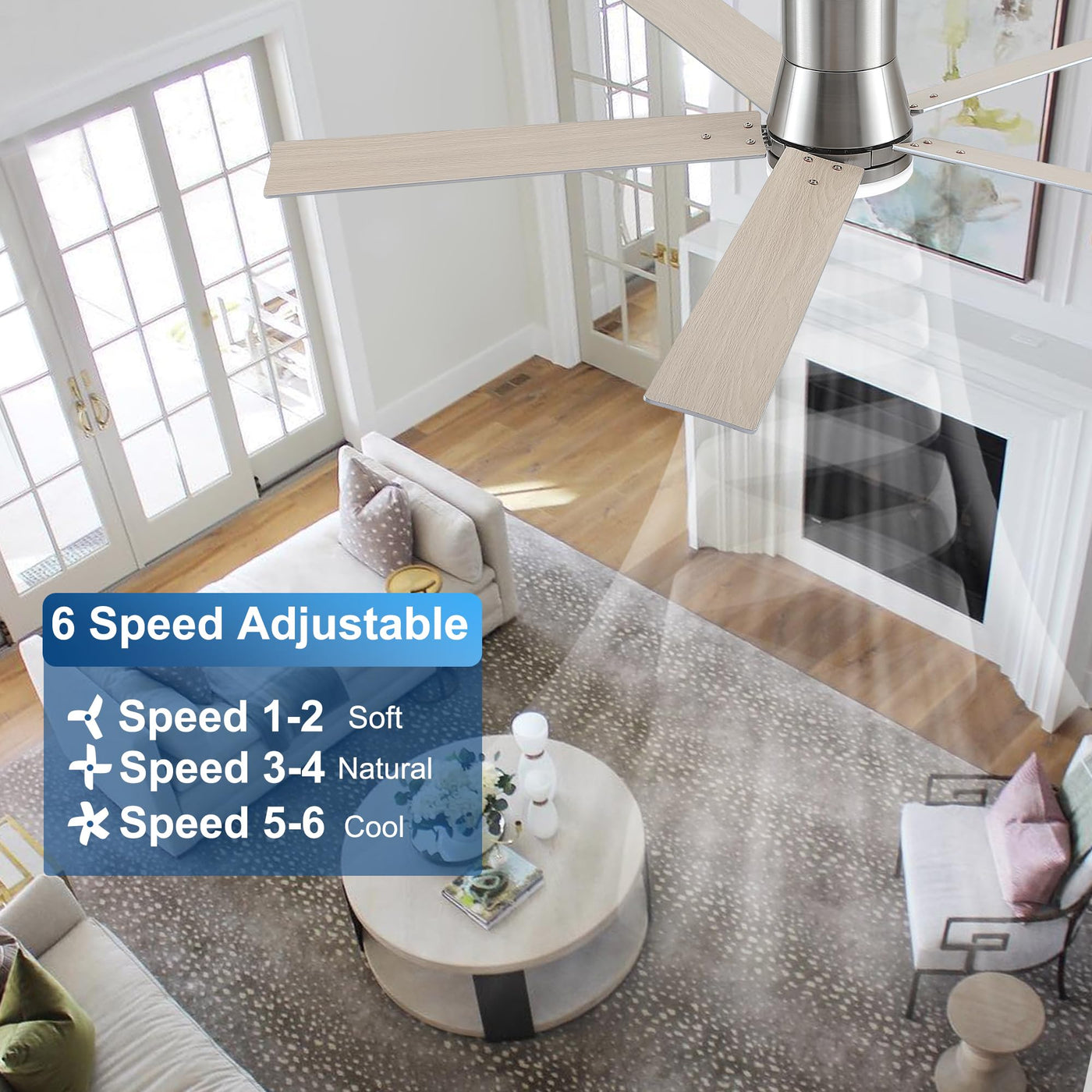 Rayqeen 60 Inch Ceiling Fans With Lights And Remote Control, Comes With 5 Double-Sided Blades , 24W 3 Color Dimmable Led , 6 Speed Reversible Dc Motor, 1/3/6 Hours Timer,For Patio Living Room Bedroom Dining Room Warehouse