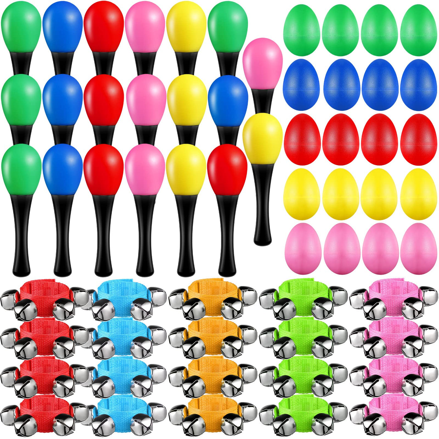 60 Pcs Shaker Musical Instruments Kids Music Party Favor Baby Learning Percussion Toy, Including 20 Pcs Wrist Hand Band Jingle B