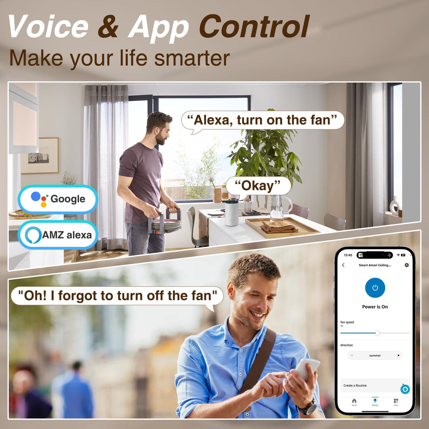 60'' Smart Ceiling Fan With Lights Remote,Control Via Alexa Google Voice App Wifi,Quiet Dc Motor,Dimmable,Outdoor Indoor Modern