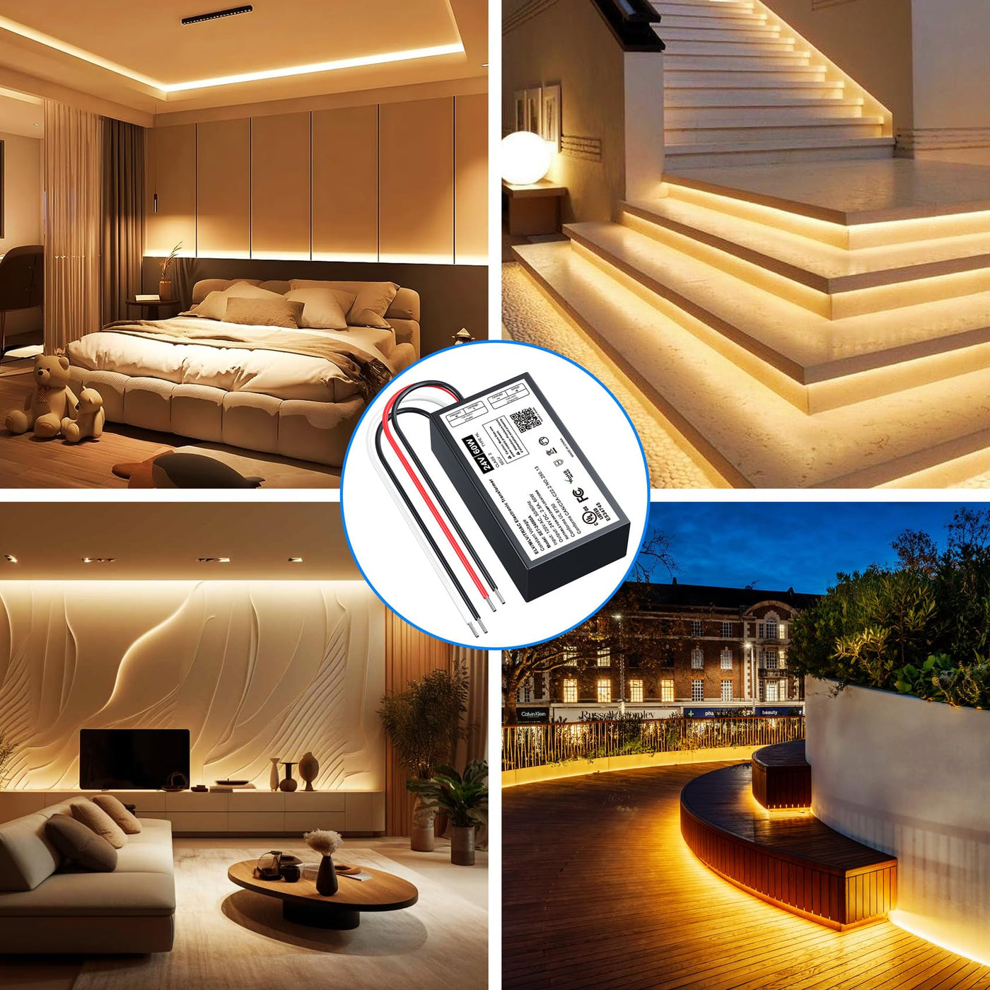 Q: What types of lighting can the 60W 24V Dimmable LED Driver power?A: The 60W 24V Dimmable LED Driver is compatible with a variety of lighting options, including 24V DC LED strips, halogen bulbs, LED modules, light bars, and accent lights, making it suitable for both residential and commercial applications.