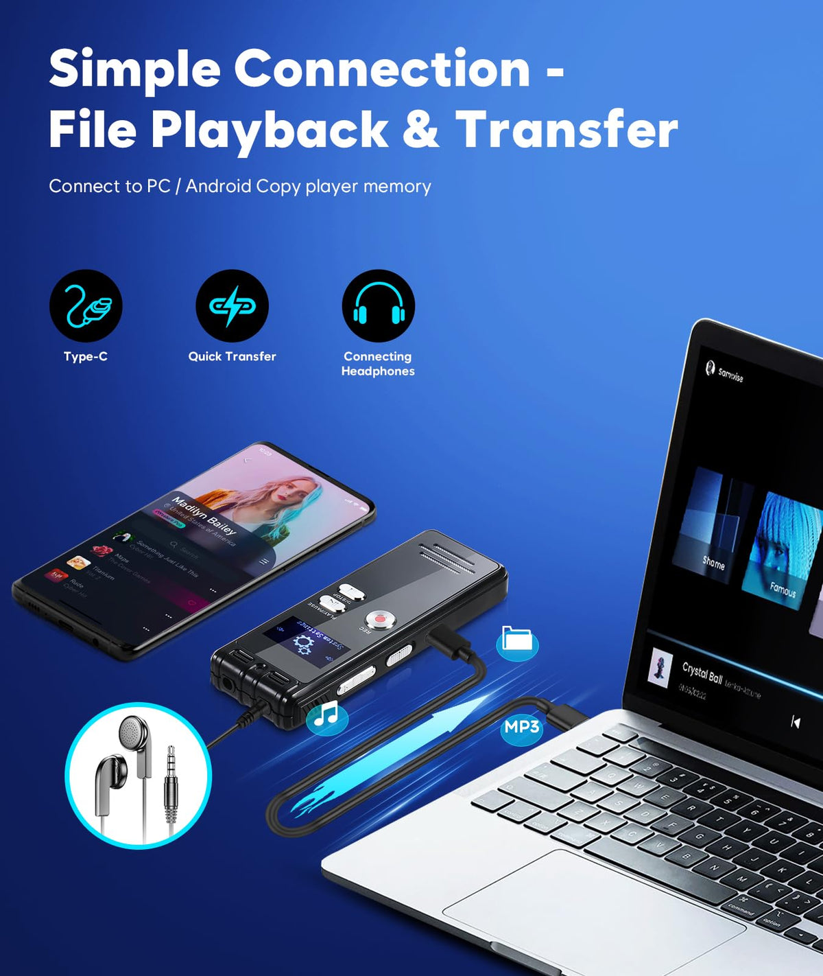 Voice Recorder Voice Recorders With Playback Recorder Tape Recorder Audio Recorder Digital Voice Recorders Digital Recorder Voice Activated Recorder 64Gb Digital Voice Recorder, 3072Kbps Digital Voice Activated Recorder For Lectures, Meetings, Interviews, 4608 Hours Sound Recorder With Microphone, A-B Repeat, Password, Usb Cable, Mp3 Player, Playback