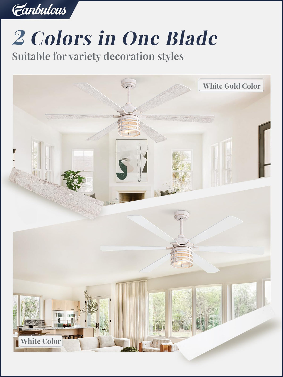 65'' Modern Ceiling Fans With Lights And Remote,White Industrial Large Ceiling Fan With 6-Speed Reversible Dc Motor And 6 Dual Finish Blades,White Ceiling Fan With Light For Living Bedroom Patio