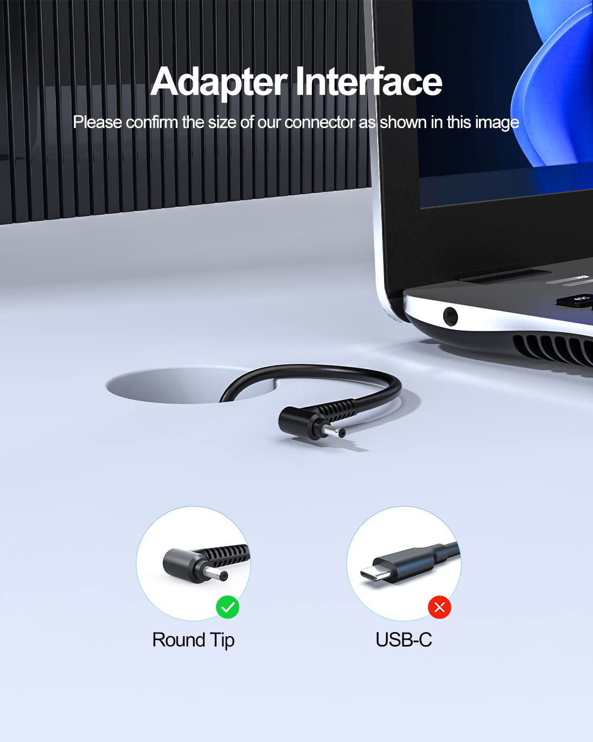 - Wattage: The Pwept Power Adapter delivers a powerful output of 19V 3.42A 65W, making it compatible with devices requiring 48W, 45W, or 40W input, ensuring efficient charging.