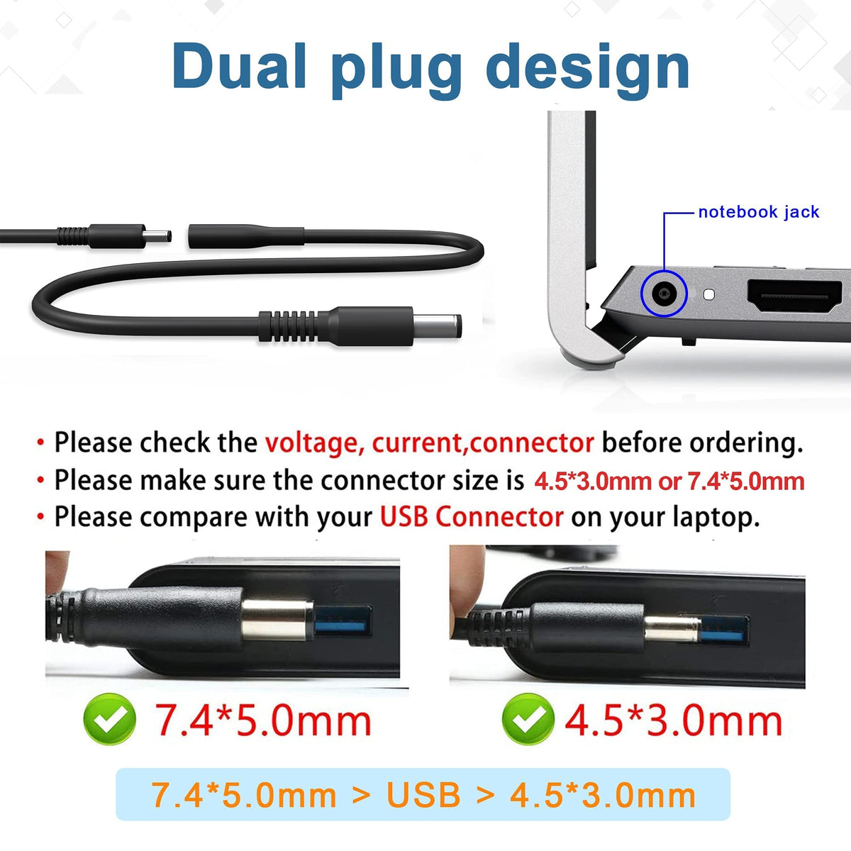 65W Dell Inspiron Charger,Replacement For All Round Connectors Dell Laptop Charger 65W/45W 15 3000 15 5000 15 7000 15 3552 Serie