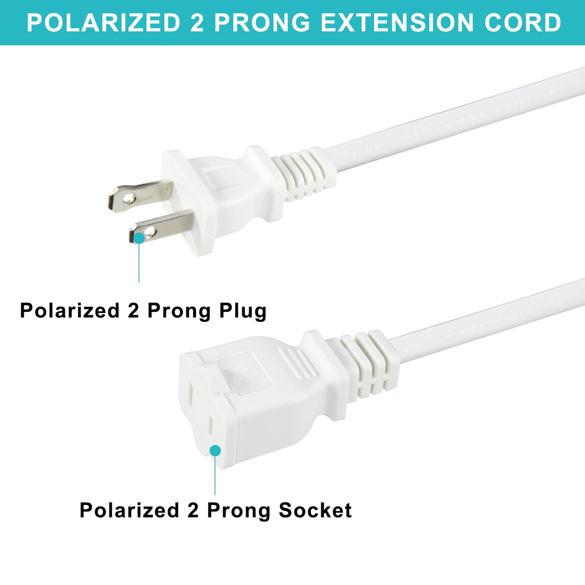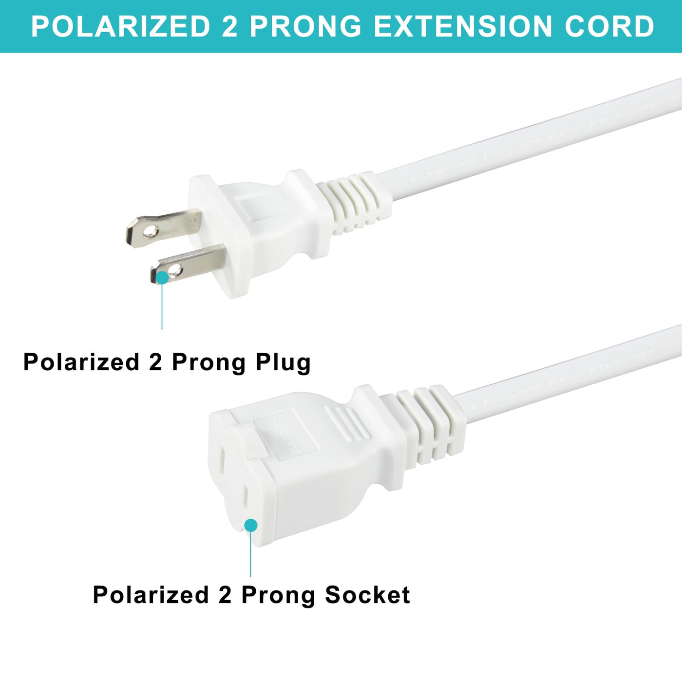 Short 6-Foot Polarized Us 2-Prong Male-Female Extension Power Cord ,16Awg 2 Prong Outlet Extension Cable 2-Prong Male/Female 13A/125V,Nema 1-15P To 1-15R Extension Cable