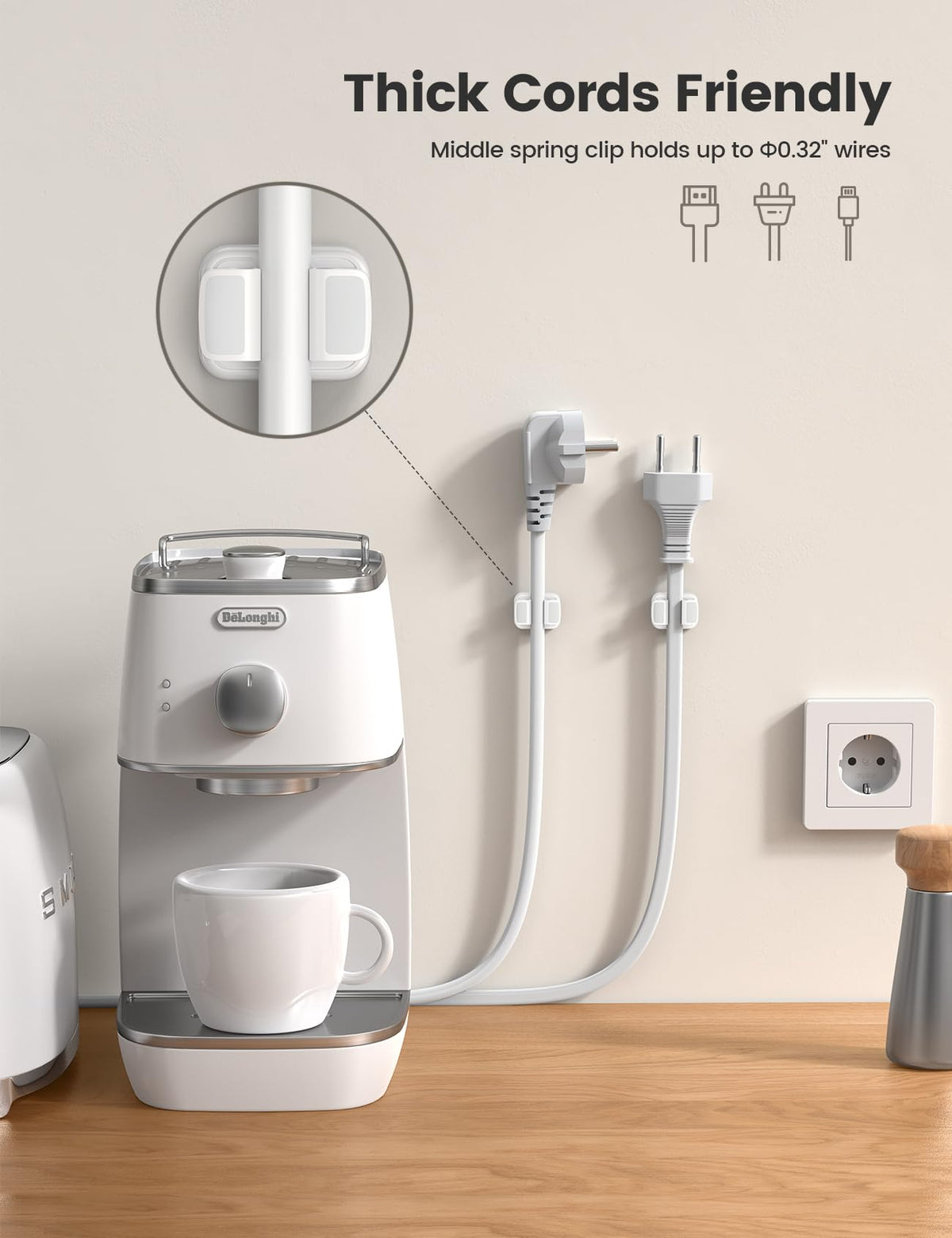 6Pack Cord Organzier Spring Clip Holder Lamicall 3 In 1 Small Clips For Desk Cable Management, Adhesive Adjustable Cable Clips