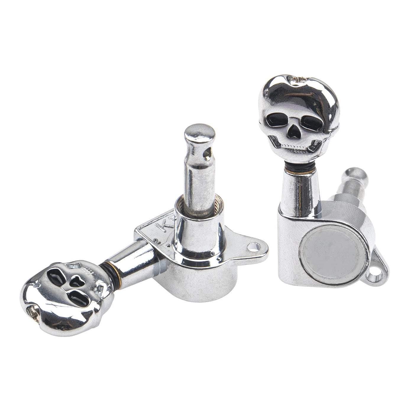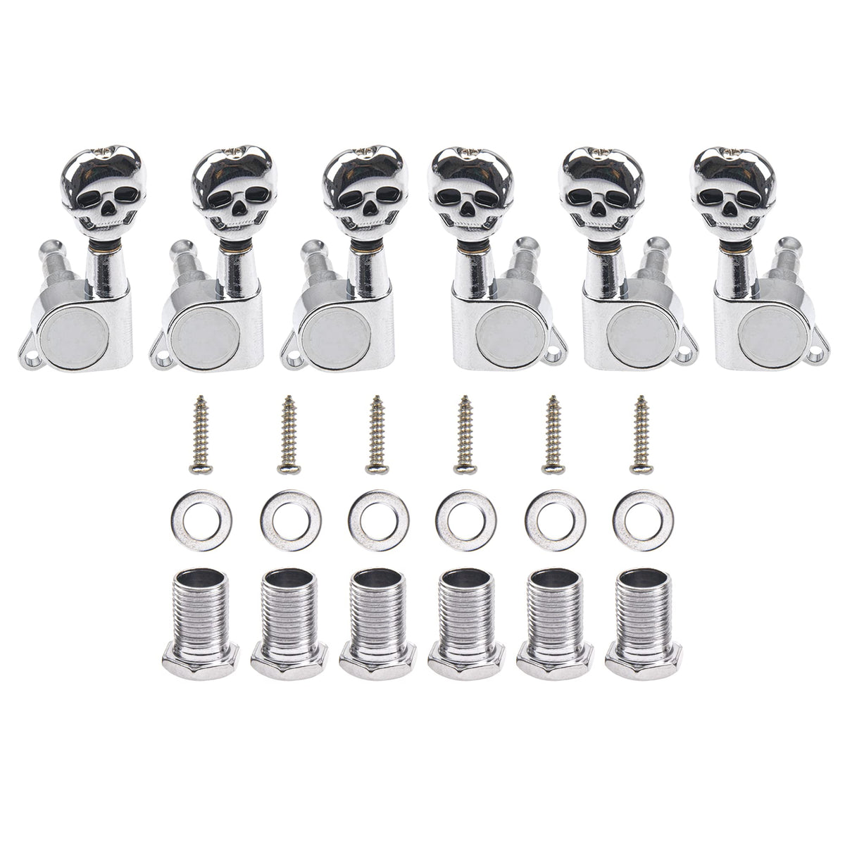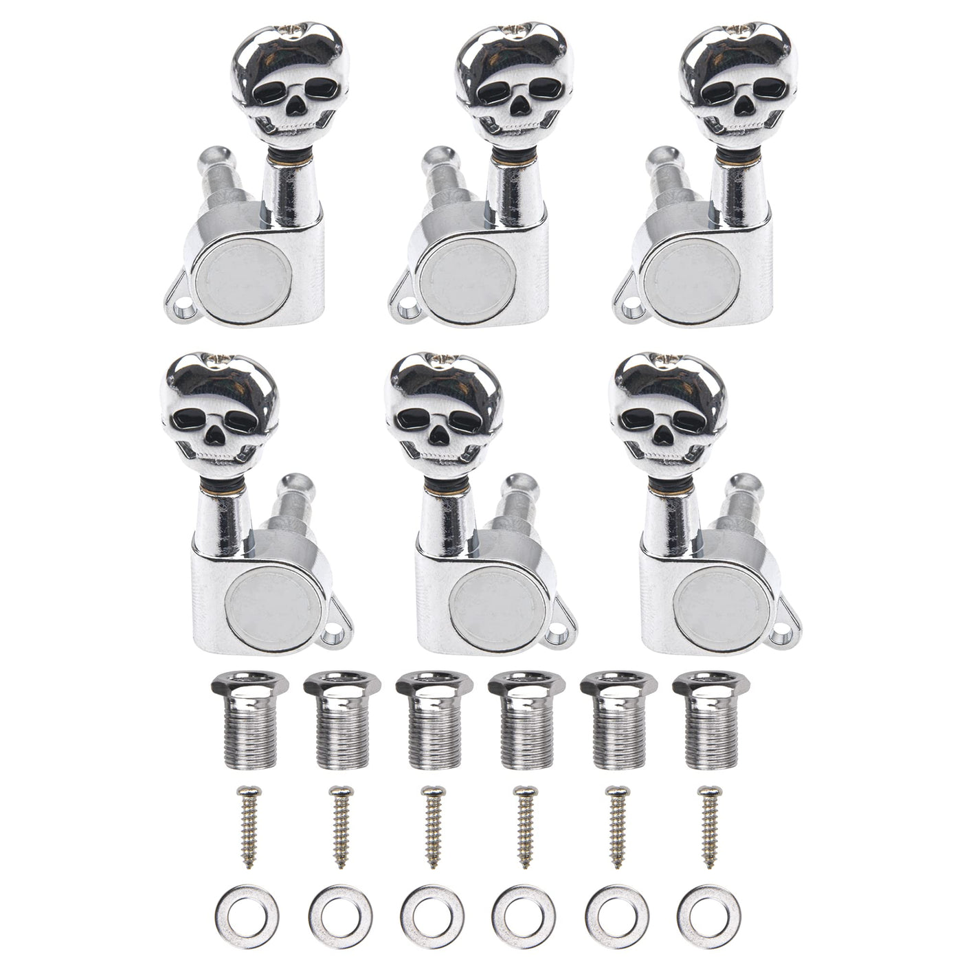 6Pcs Yootones 3L3R Skull Guitar Sealed Gear Tuning Pegs Machine Head Knobs Machine Head Tuners Compatible With Electric Guitar A