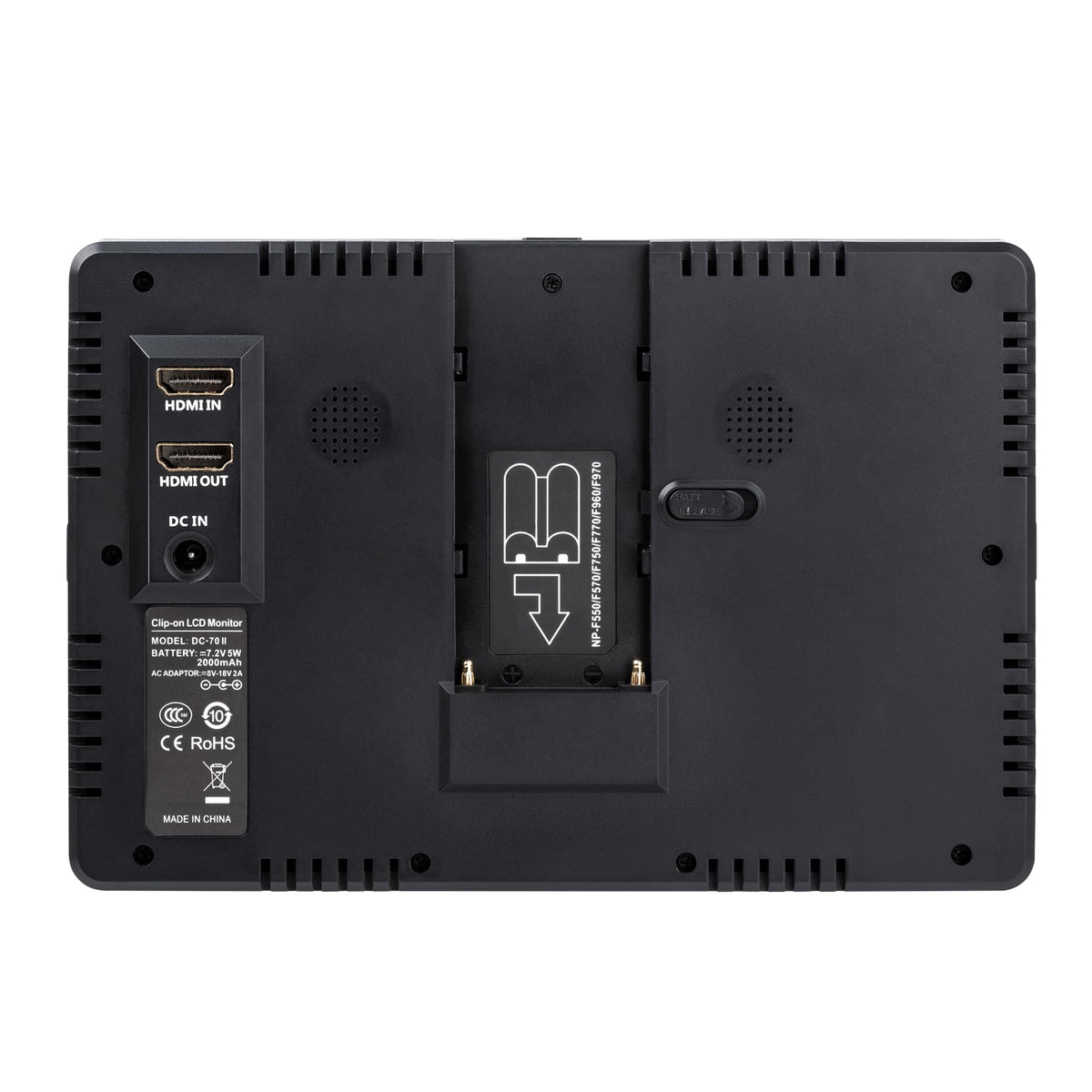 Some Nikon Cameras Can'T Show Images When Connect The Monitor , Please Don'T Worry ,Just Please Disconnect The Monitor , And Set Your Camera .Menu-Setup Menu-Hdmi-Device Control-Offproduct Function:Dc-70 Is A Portable Lcd Monitor For Use With An Interchangeable Lens Digital Camera Or An Interchangeable Lens Digital Hd Video Camera Recorder With An Hdmi Terminal And Live View Mode. It Can Display Hdmi Video Output From The Camera. The Following Functions Help You To See The Image More Clearly And Take Better Pictures.Wide Viewing Angle Lcd Screenuseful Functions Such As Peaking And Pixel-By-Pixel Zoomcontrols Camera Shutter Release, Ensures The Long-Distance Monitor.Moveable Shoe Adaptor Enables Easy Removal When Using A Camera That Has An Auto Lock Accessory Shoe.Works With Rechargeable Battery Or Power Adapter.Specifications:Generaldimensions(W H D): Approx. 191 128 36 Mmweight: Approx. 480G (Excluding Battery)Color: Blackoperating Temperature: +0 To +40C (+32 To +104F)Storage Temperature: -20 To +60C (-4 To +140F)Power Supply: Dc 8V~18Vbattery: Fm500H / Qm71D / Qm91Dpanellcd Panel Size: Approx 7Resolution: 1280 800 Pixelsspeaker: Yesinput Jack: Input Jack 1 Hdmi 1 / Input Jack 2 Av 1Input Jack 3 Dc In (Power Adapter Plug)Input Jack 4 Usb Upgrade Jackoutput Jack:Headphones Output Jack / Output Jack 1 Hdmi 1Lcd Monitor X 1Sun Shade Hood 1Standard Shoe 1> Hdmi Cable Type A-Type C 1Protective Bag X 1F550 Battery (Gift) X 1Battery Charger(Gift) X 1Original Packing X 1