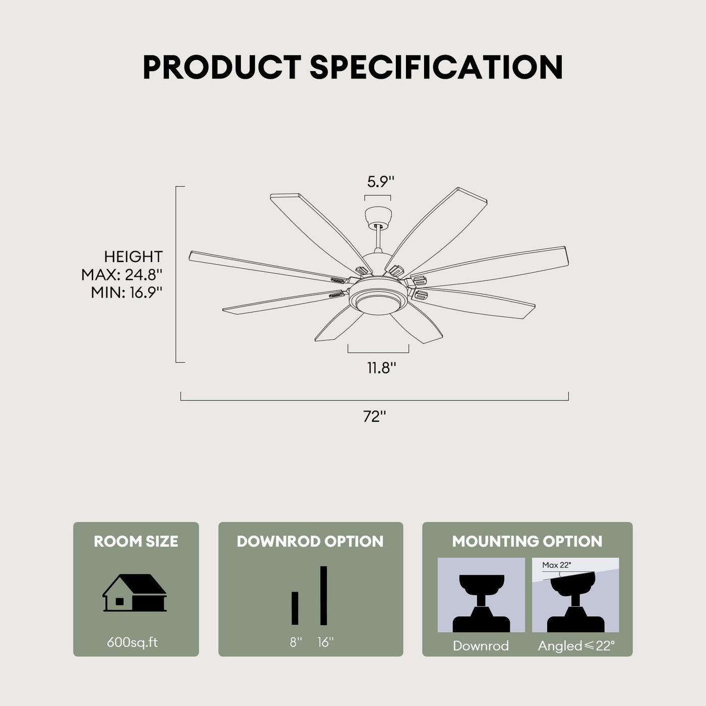 72 Inch Large Ceiling Fans With Lights And Remote Control, Ceiling Fan For Bedroom Living Room And Patio, Modern Ceiling Fan For Indoor And Outdoor