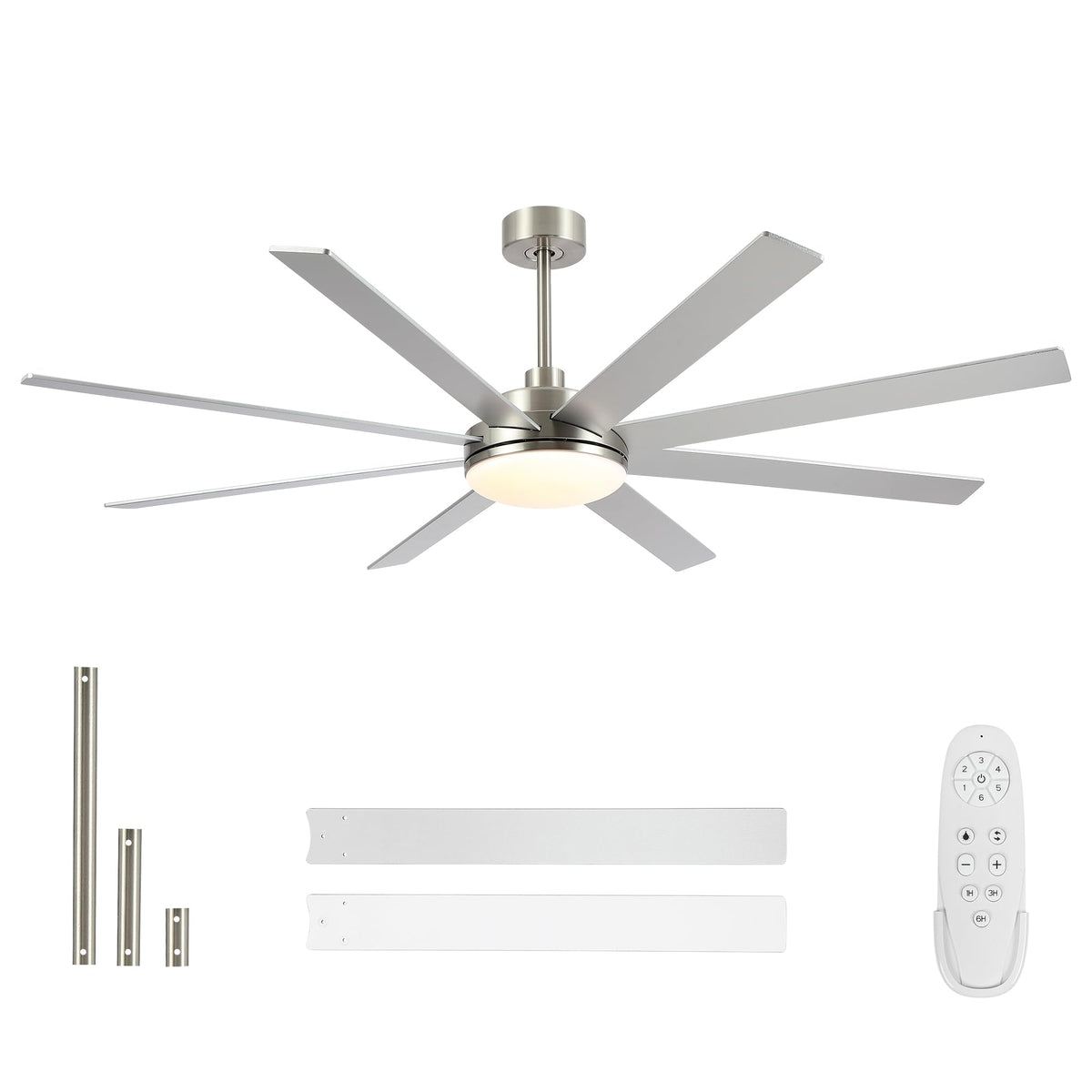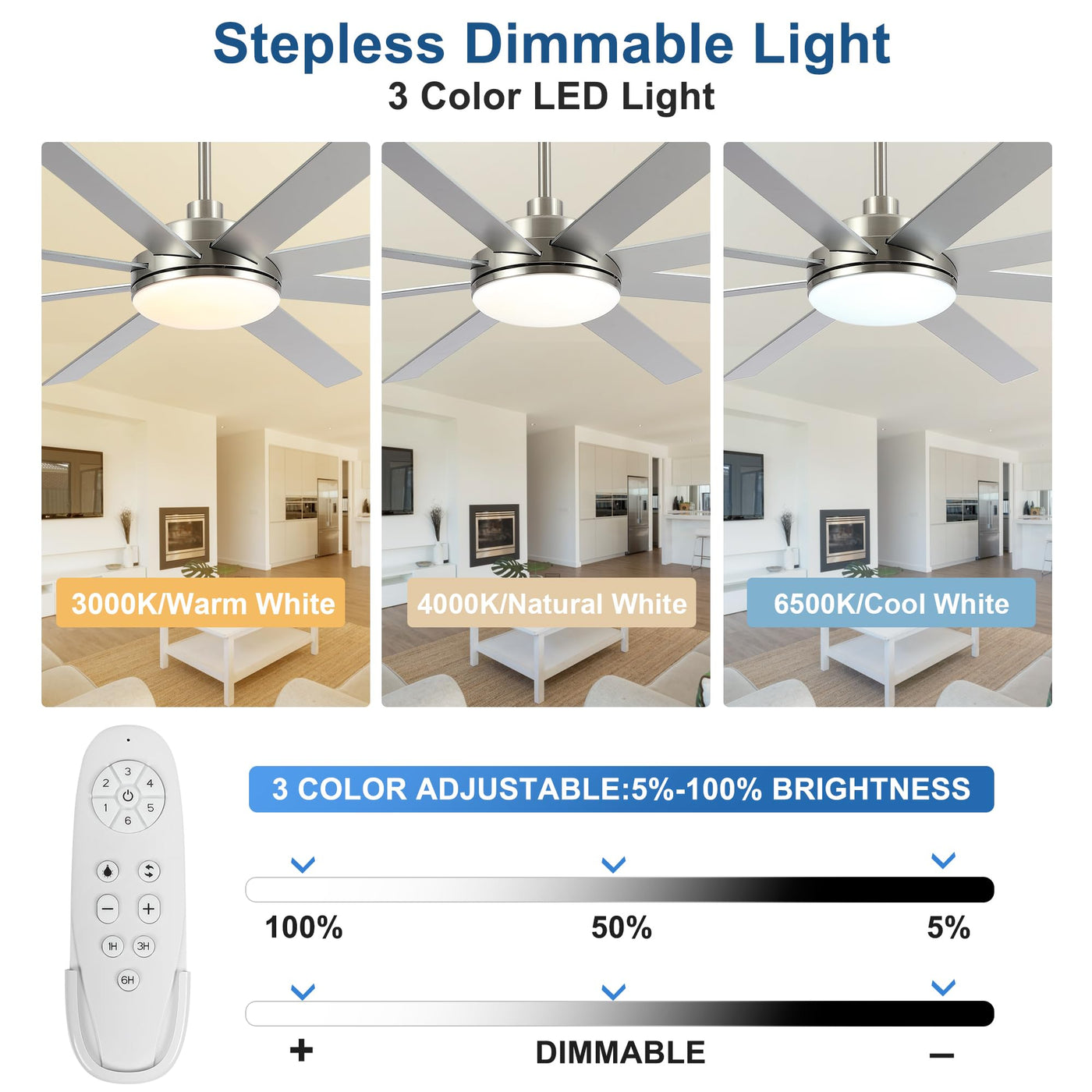 72 Inch Large Ceiling Fans With Lights And Remote, Quiet Modern Brushed Nickel Ceiling Fan For Indoor Or Outdoor Patio, 6 Speed