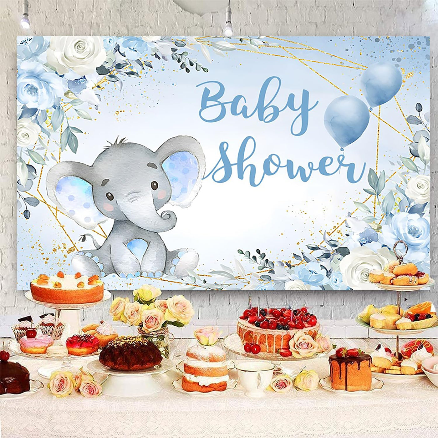 7X5Ft Elephant Boy Baby Shower Backdrop Blue Flower Elephant Baby Shower Party Photography Background For Newborn Baby Banner De
