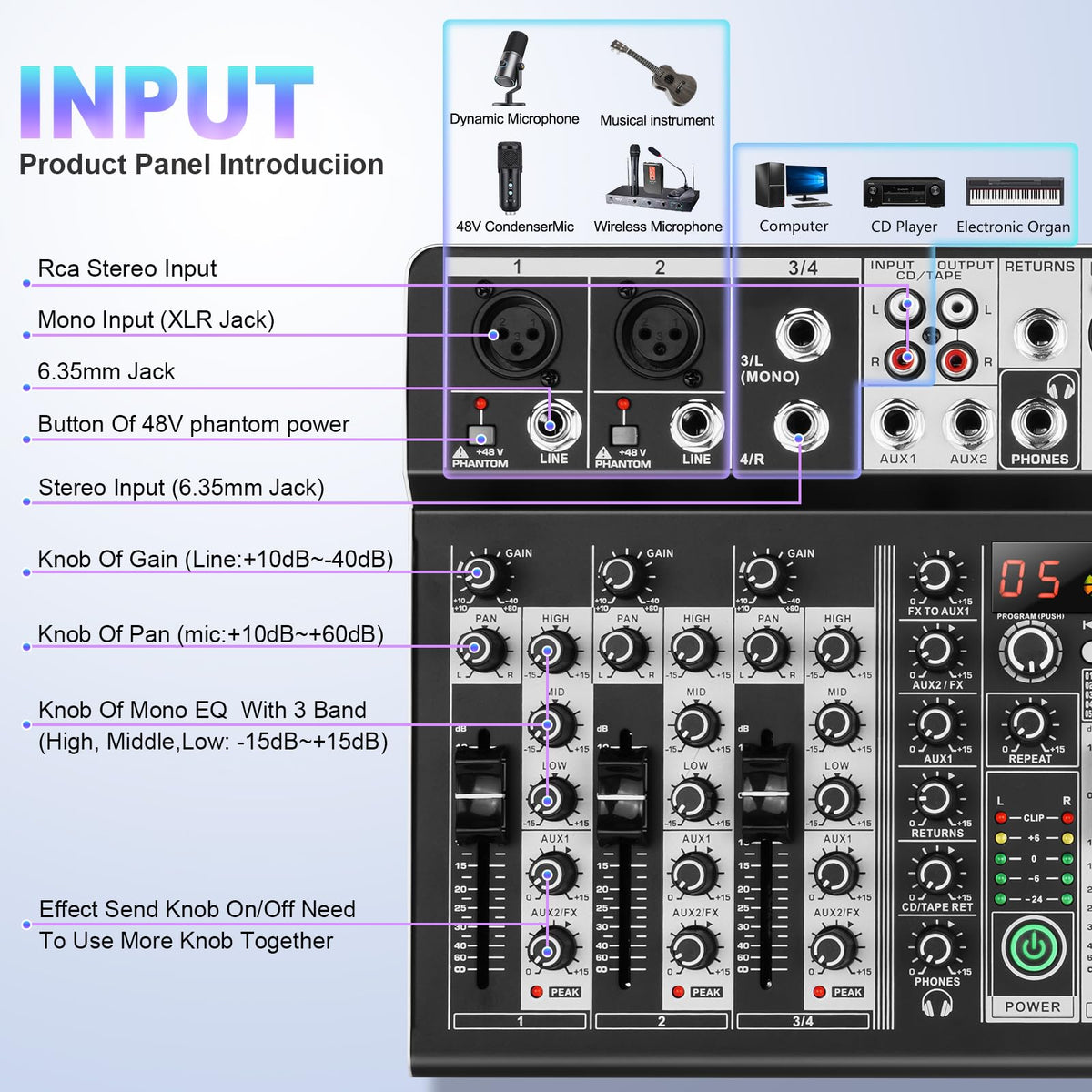 Professional Audio Mixer,Alpowl Sound Board Console System, Interface 4 Channel Digital Usb Bluetooth Mp3 Computer Input 48V Phantom Power Stereo Dj Studio Streaming Fx 16-Bit Dsp Processor Professional Audio Turbal Mixing Power 8 Channel With Mp3 Player+Bluetooth U Disk 48V Phantom Power Source Usb Recording Stagnation Stage U4 Audio Mixer 4-Channel Usb Audio Interface Mixer, Dj Sound Controller Interface With Usb,Soundcard For Pc Recording,Built-In 48V Phantom Power For Home Music Production,Live Streaming