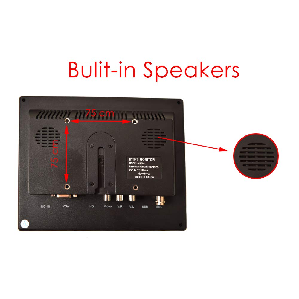 8 Inch Cctv Monitor, Tft Lcd Security Screen With Vga Hdmi Av Bnc Usb Audio In/Out Ports Built In Speaker, Hd Display For Survei