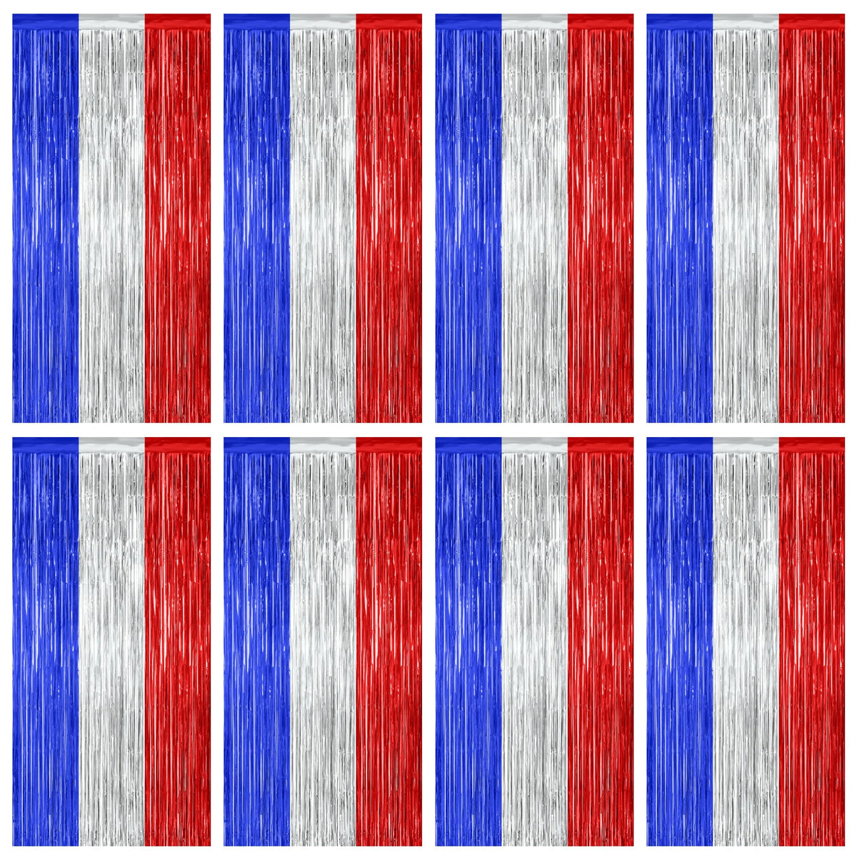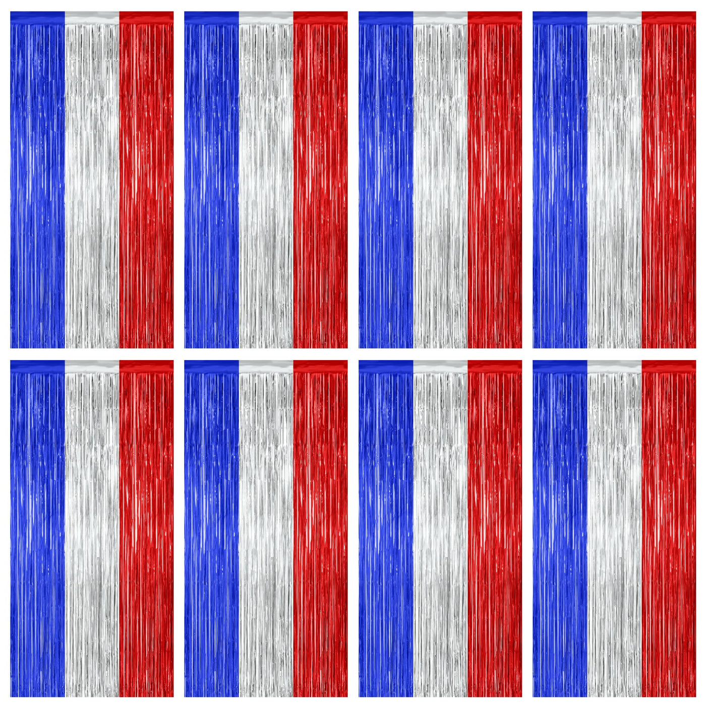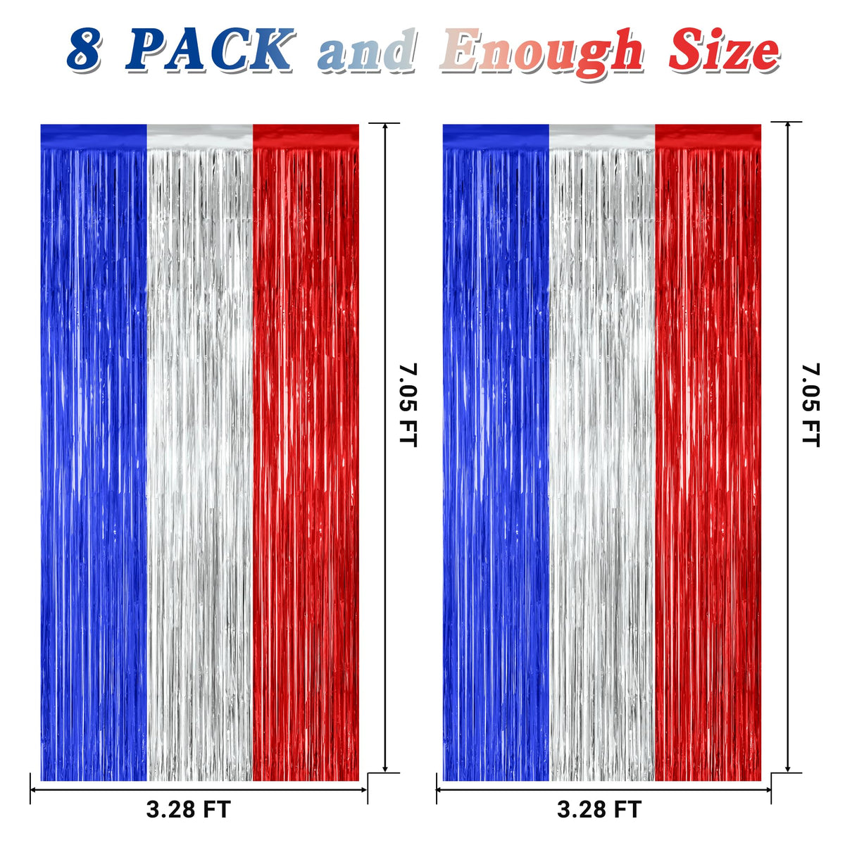 8 Pack 4Th Of July Photo Backdrop, 3.28 Ft X 7.08 Ft Fourth Of July Decorations, Metallic Blue Silver Red Patriotic Tinsel Backd