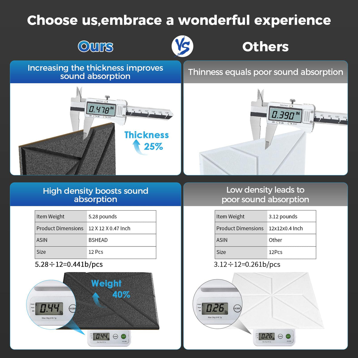 8 Pack Self Adhesive Soundproof Wall Panels, 12 X 12 X 0.47 In Sound Proof Foam Panels For Walls, 1.2Lb/Ft High Density, Thicker