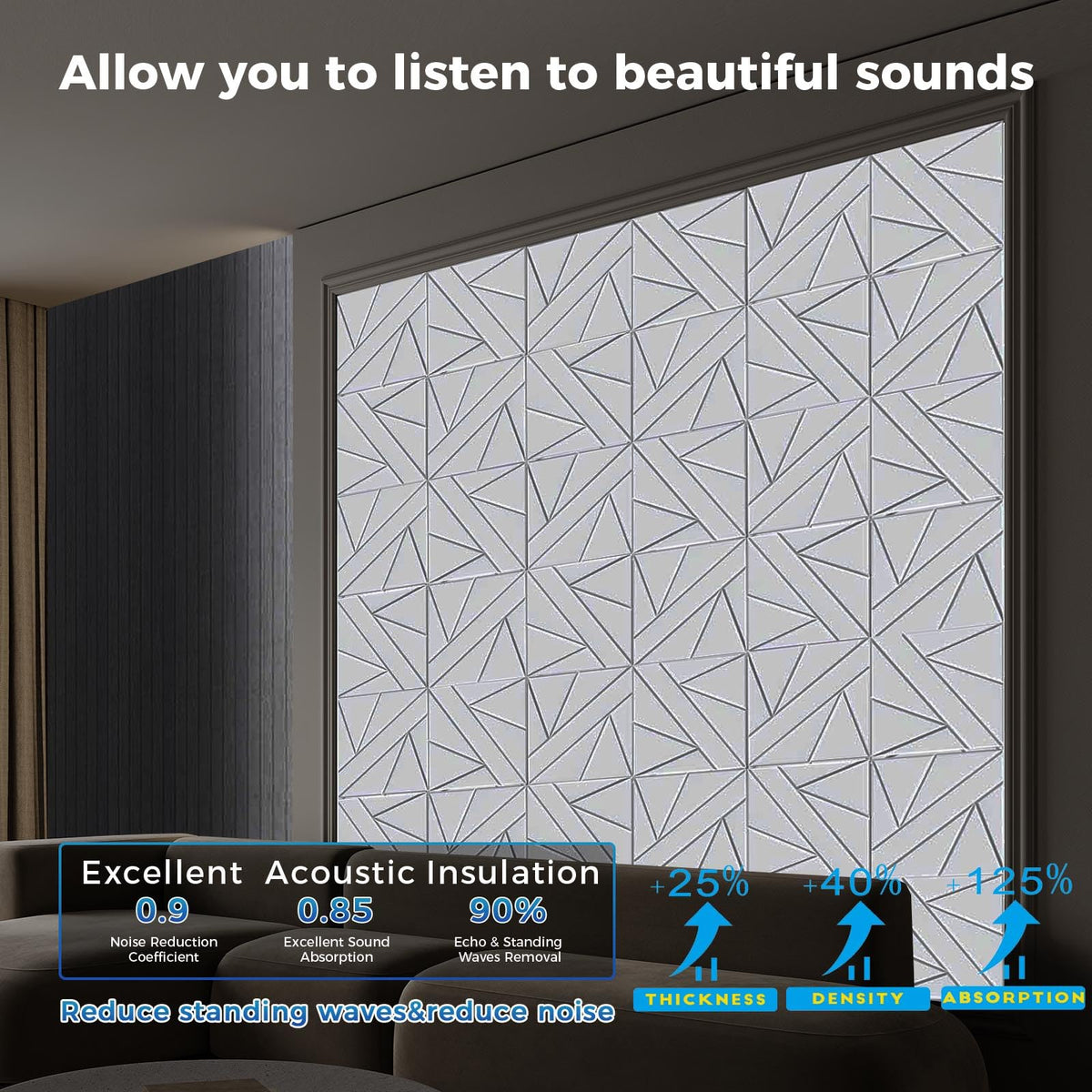 Have You Ever Dreamed Of Having A Peaceful Space, Whether Its A Corner Of Your Home Or A Corner Of Your Office? Now, That Dream Is Within Reach. Our Diy Free-Jointed Acoustic Panels Provide You With A Simple And Efficient Solution To Instantly Silence Your World. Product Name: Sound-Absorbing Panels/Sound Insulation Panels Product Material: 100% Polyester Product Size: 30 X 30 X 1.2 Cm/12 X 12 X 0.4 In Product Thickness:0.47 In Product Density: 19 Kg/Cubic Meter (42 Lbs/Cubic Meter) Product Color: White Product Quantity:16 Pcs Features: 1. The Acoustic Panels Is Made Of High-Quality Polyester Fiber, Which Is Effectively Flame-Retardant, Safe To Touch And Has No Odor, Allowing You To Breathe Safely In A Small Installation Space. It Also Has Thickened Density And Thickness To Allow Sound Absorption. The Effect Is Even Better, Providing You With A Perfect Listening Environment. 2. Acoustic Wall Panels Uses A Specially Designed 45 Chamfer, Which Supports The Use Of A Separate Panel For Rotation And Placement. At The Same Time, A Variety Of Color Options Can Match Your More Installation Needs. Whether It Is A Small Area Of Embellishment Or A Larger Area Of Splicing, It Can Be Easily Used. 3. The Unique Design That Can Be Diyed And The Foam Sound Absorbers With Self-Adhesive Backing Make The Installation Easier And More Time-Saving. And Its Strong Decorative Effect Makes It A Perfect Choice For Various Scenarios Such As Musical Instrument Room, Podcast Room, Recording Room, Piano Room, Theater, Living Room, Bedroom, Office, Etc.