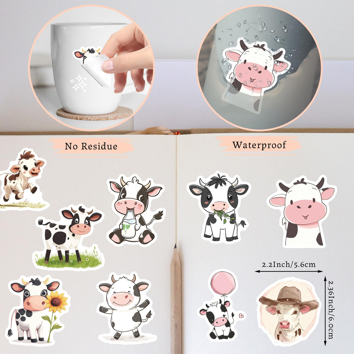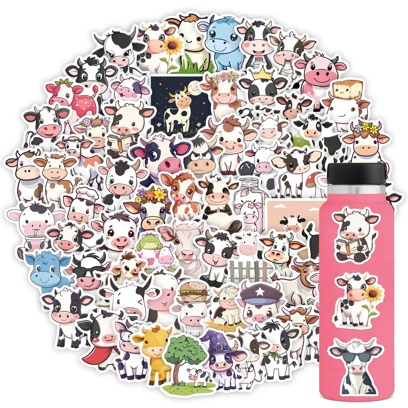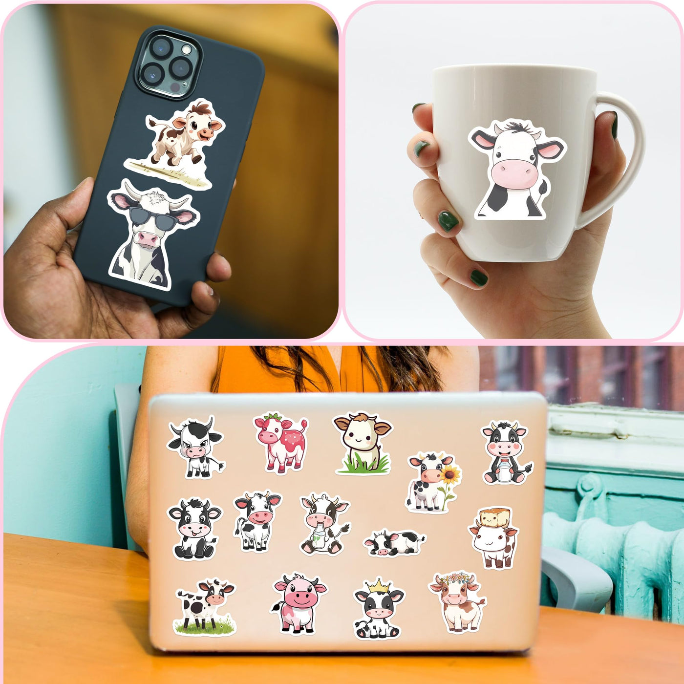 Q: Can these cow stickers be used outdoors?A: Yes, these cow stickers are waterproof, making them suitable for outdoor use on items like water bottles, laptops, and skateboards.