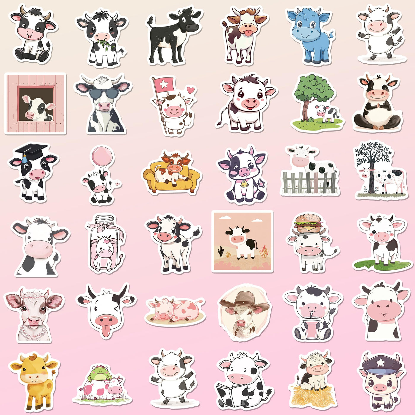 Q: What materials are the cute cow stickers made from?A: The cute cow stickers are made from superior vinyl PVC, ensuring they are waterproof and feature high-definition printing for vibrant designs.
