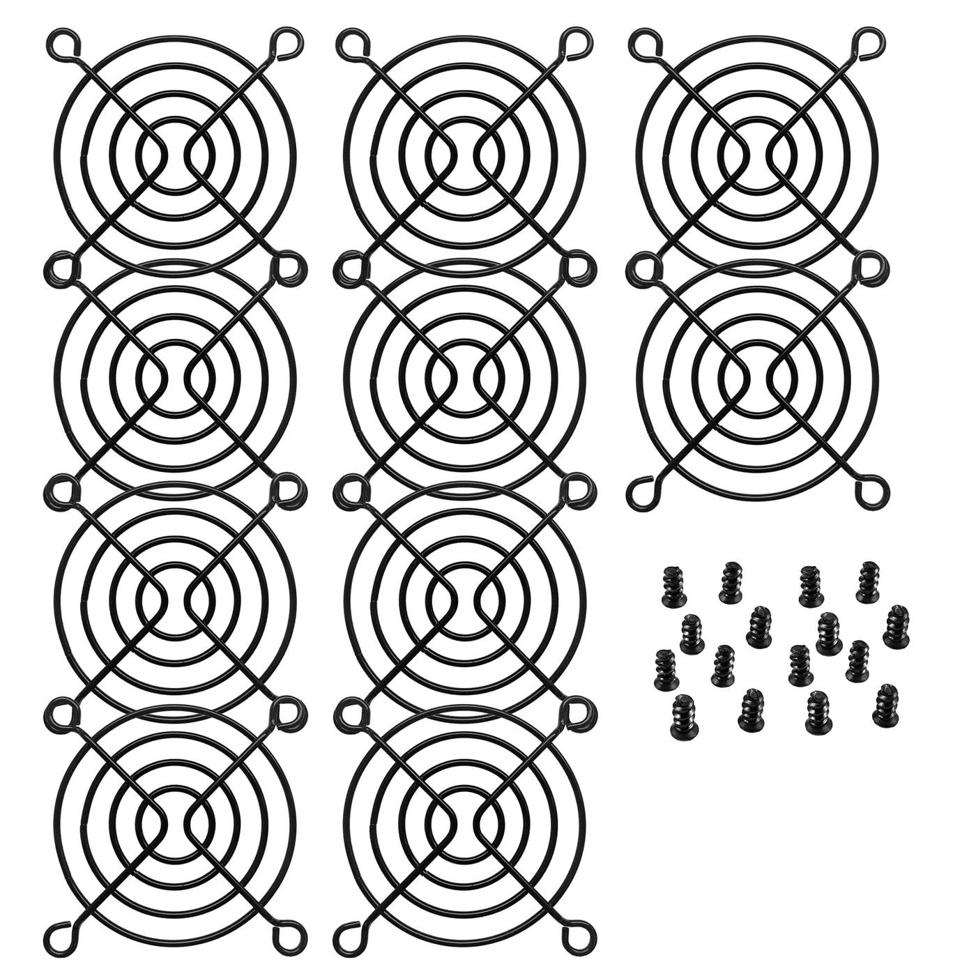 Q: How many grills and screws are included in the pack?A: Each pack includes 10 fan grills and 40 black fan screws, providing ample supplies for multiple fan installations.