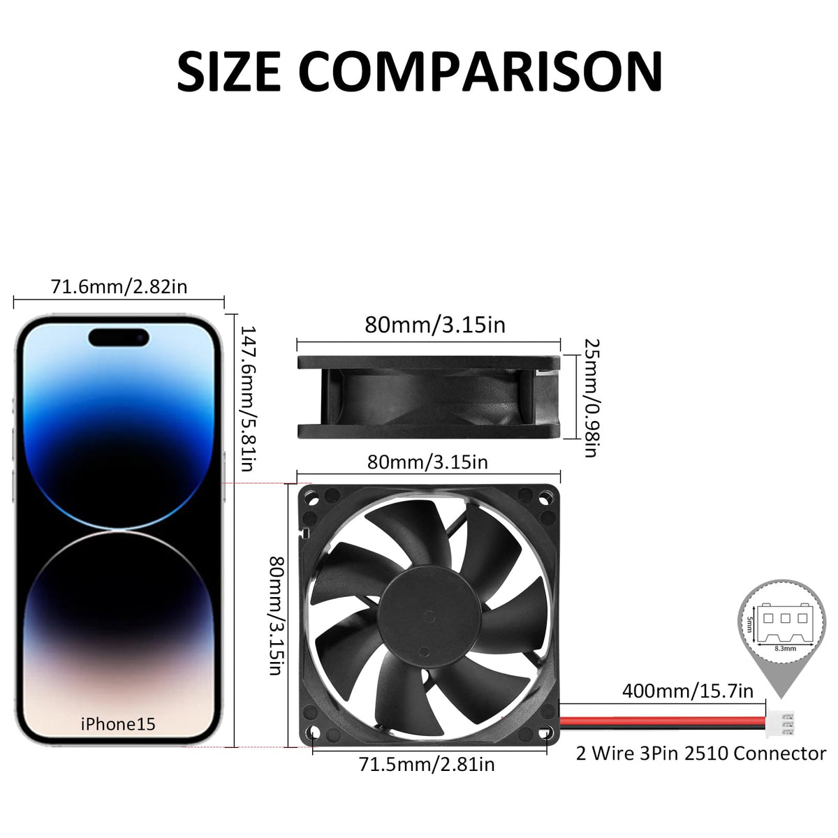 80Mm Moisture Proof Fan 2 Pack 12V Dc 8025 High Airflow Cooling Fan 2 Wire 3Pin 3500Rpm For Rv Fridge