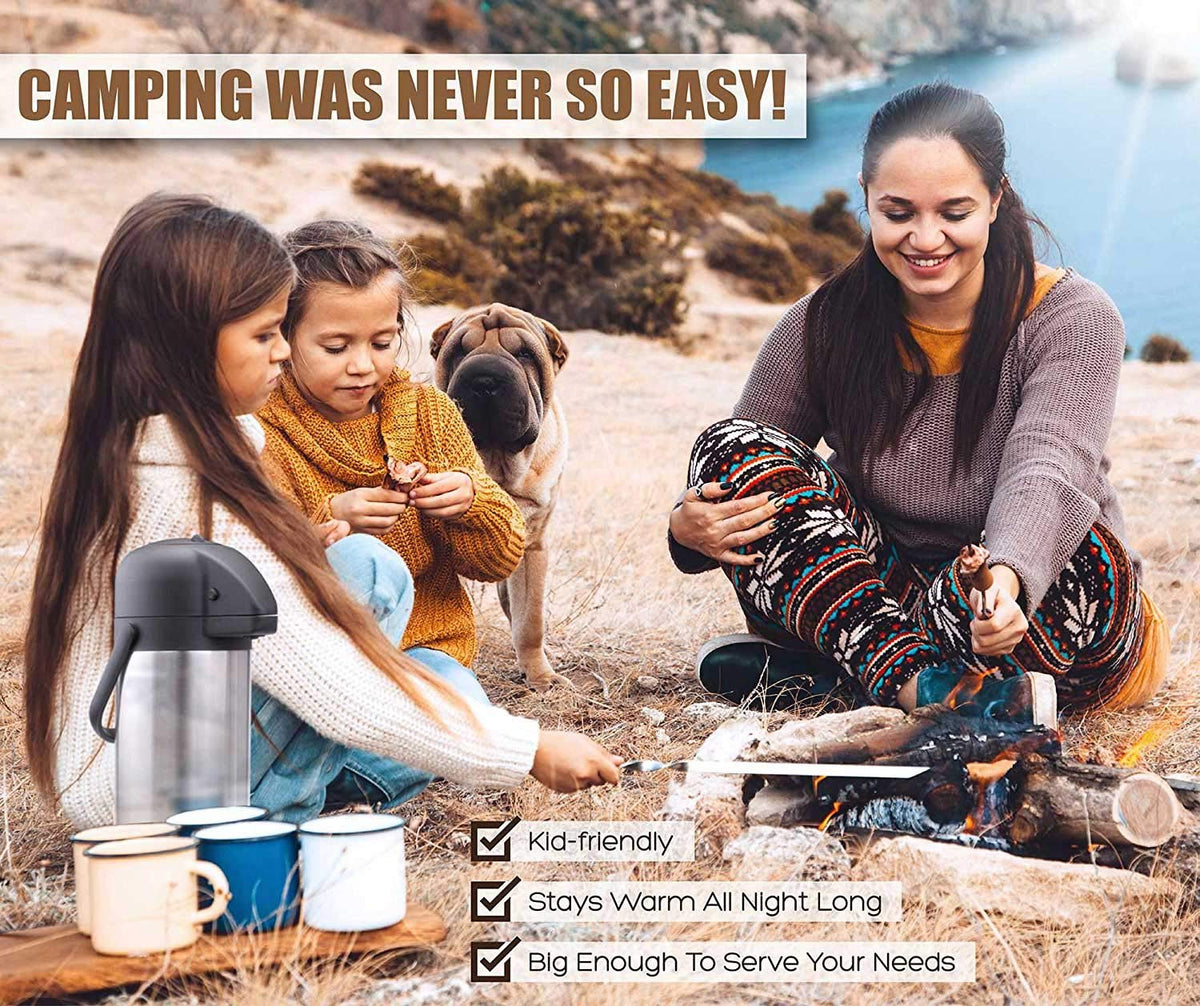 Airpot Coffee Dispenser With Pump - Insulated Stainless Steel Coffee Carafe (85 Oz.) - Thermal Beverage Dispenser - Thermos Urn For Hot/Cold Water, Party Chocolate Drinks