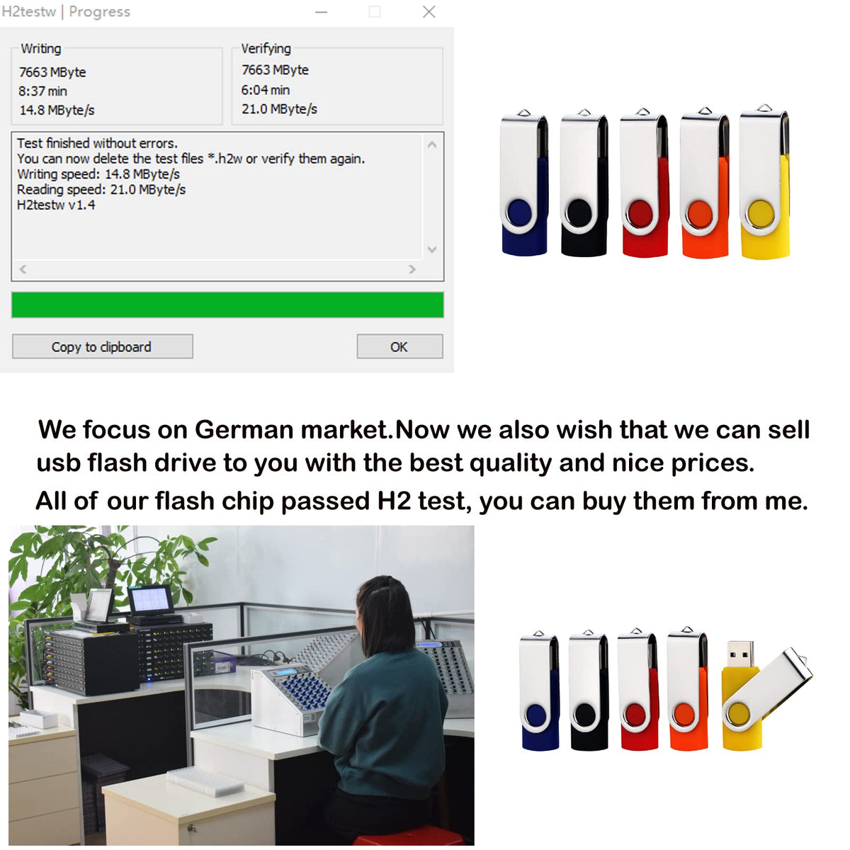 [1] Item: Usb830 [2] Color: Black?Yellow?Orange?Red And Blue [3] Size:2.32*0.75*0.39 Inches [4] Material: Metal And Abs [5] Quantity: 10Pcs [6] Capacity: Usb2.0 8Gb (Mlc Flash Chip) [7] Write Speed: 12Mb/S [8] Read Speed: 20Mb/S [9] Package: Poly [10] Warranty: One Year [11] Support Windows7 / 8 / 10 / Vista / Xp / 2000 / Me / Nt Linux And Mac Os [12] We Used H2 Software To Test All Flash Chips By Copying Machine.
