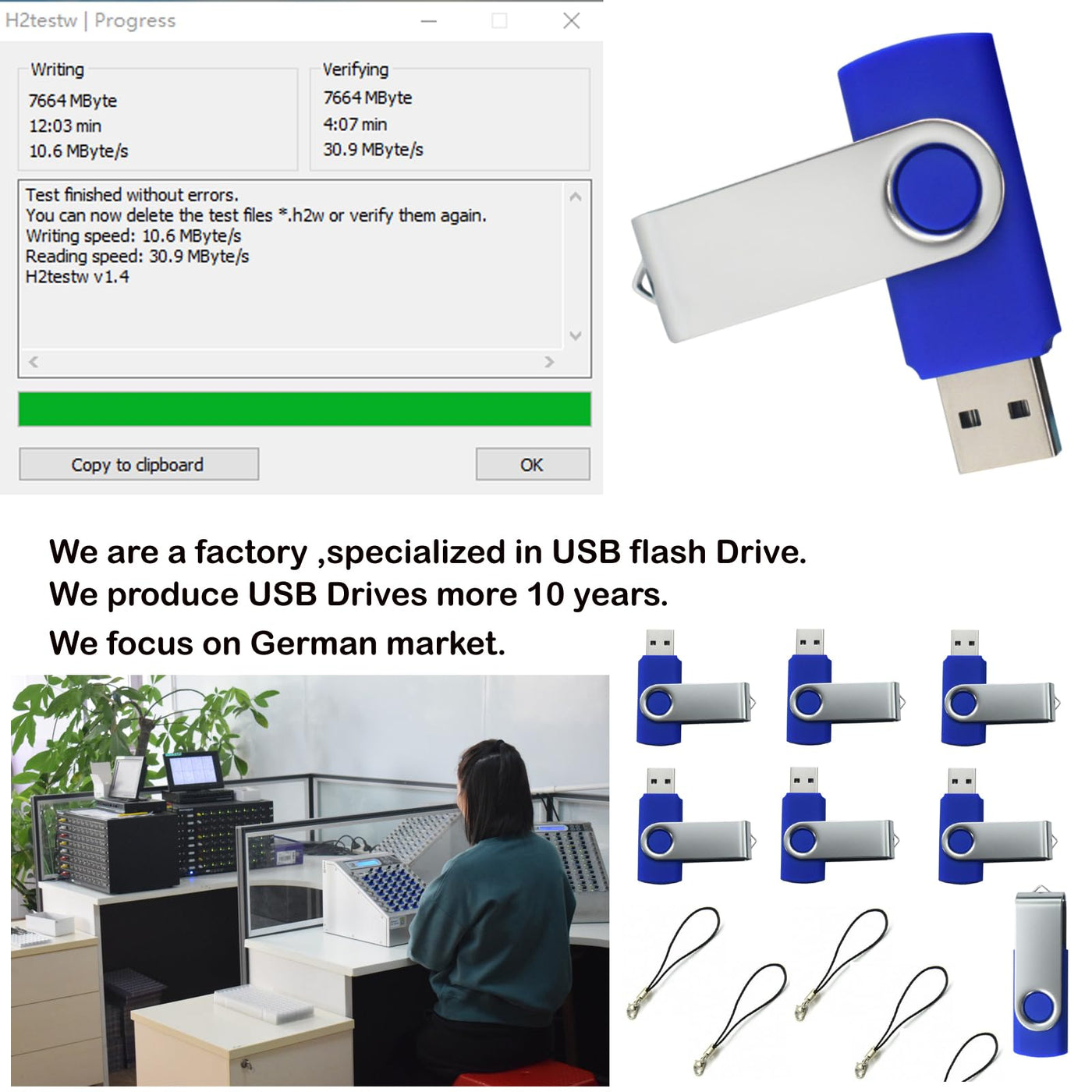 [1] Item: Usb833 [2] Color: Silver And Blue [3] Size:2.32*0.75*0.39 Inches [4] Material: Metal And Abs [5] Quantity: 50Pcs [6] Capacity: Usb2.0 8Gb (Mlc Flash Chip) [7] Write Speed: 12Mb/S [8] Read Speed: 20Mb/S [9] Package: Poly [10] Warranty: One Year [11] With 50 Pieces Lanyards [12] Support Windows7 / 8 / 10 / Vista / Xp / 2000 / Me / Nt Linux And Mac Os [13] We Used H2 Software To Test All Flash Chips By Copying Machine.