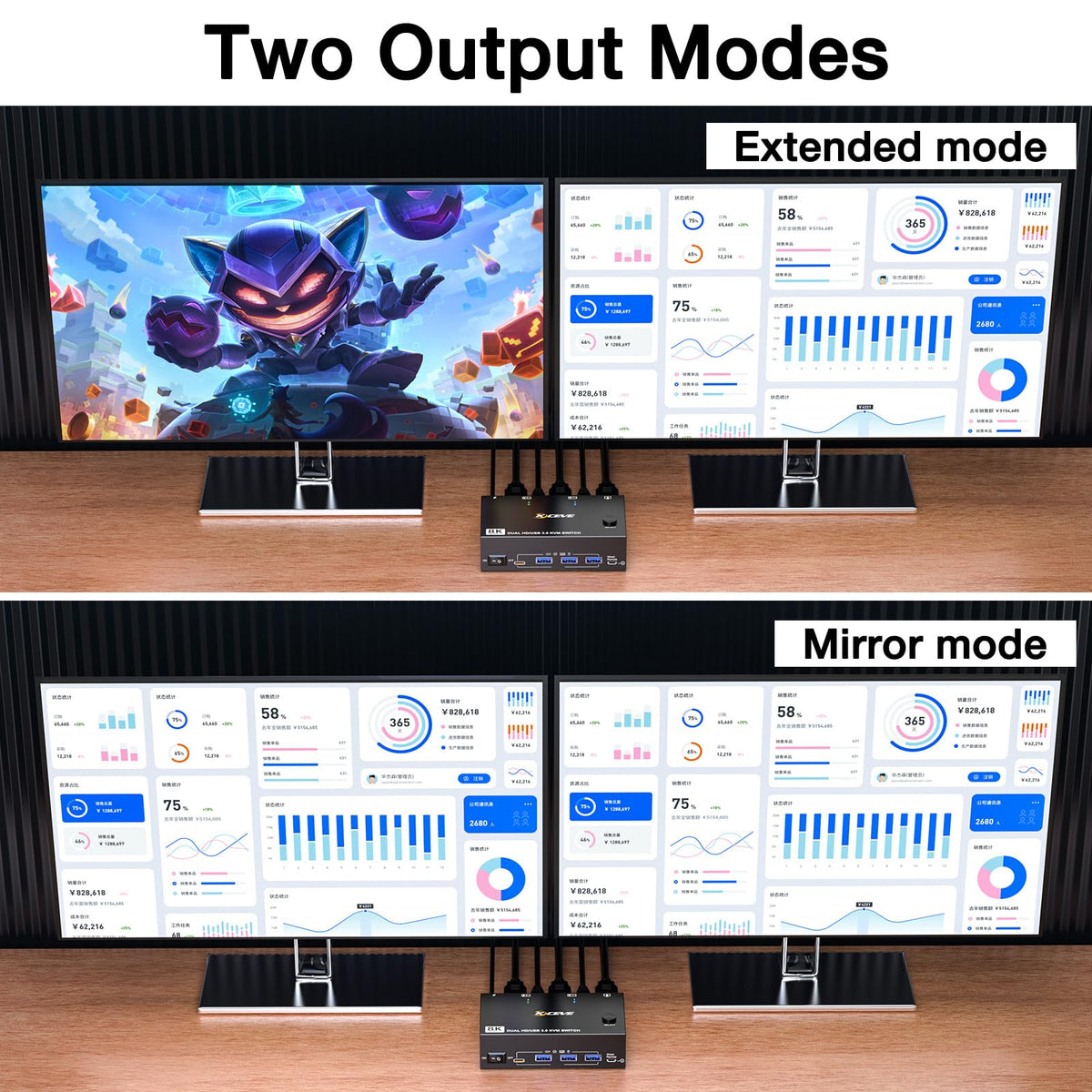 8K Hdmi Kvm Switch 2 Monitors 2 Computers 8K@60Hz 4K@160Hz, Mleeda Usb 3.0 Dual Monitor Kvm Switch For 2 Computer Share 2 Monitor And 4 Usb3.0 Hub,Wired Remote,12V Power Adapter And Usb Cable Included
