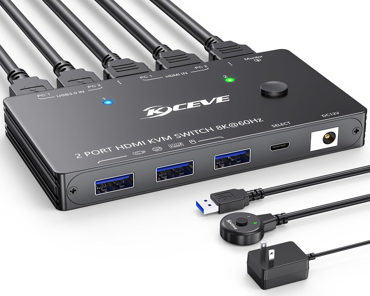 8K Kvm Switch Hdmi 2 Port 8K@60Hz 4K@120Hz,Mleeda Hdmi Kvm Switch For 2 Computers Share 1 Monitor And 3 Usb 3.0 Devices,Hdcp 2.3, Hdr 10,With Wired Remote, Power Adapter And 2 Usb3.0 Cables