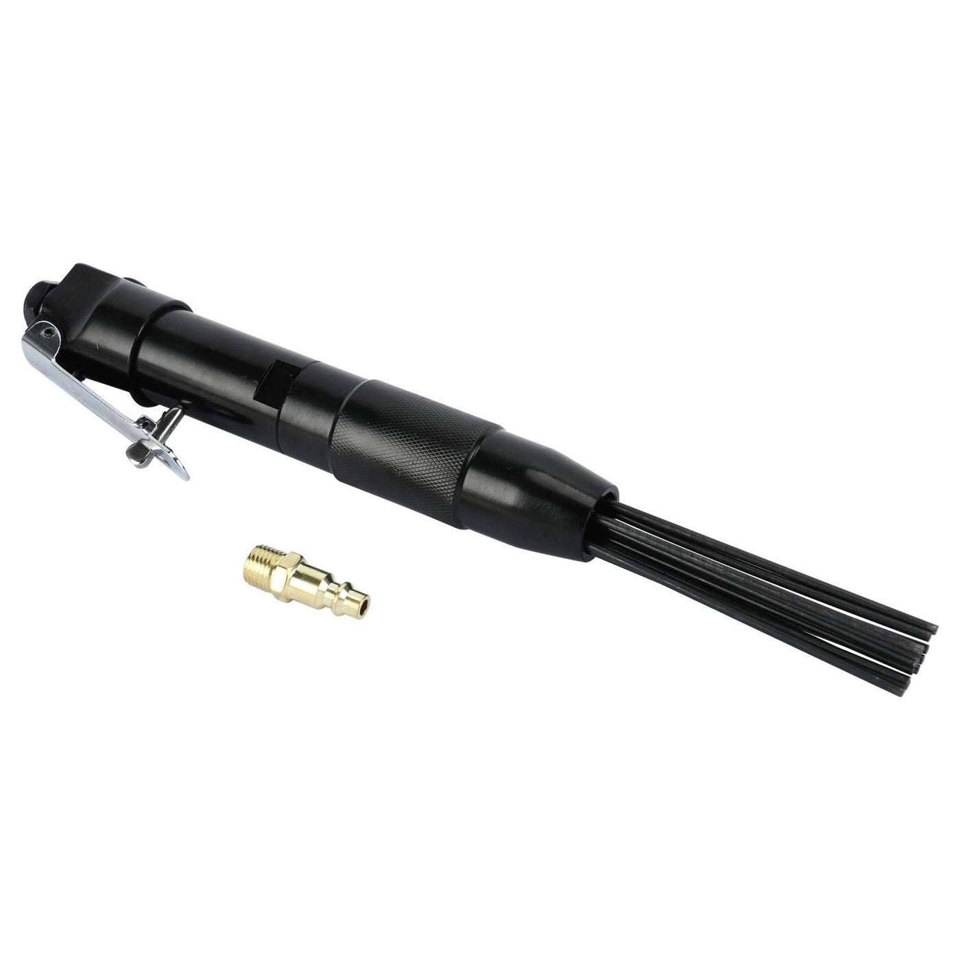 Description: The 12 Hardened Steel Needles On This Needle Scaler Work At A Speed Of 4000 Bpm To Remove Stubborn Rust, Dirt, Paint And Weld Slag Easily. The Needle Scaler Is Constructed Of Carbon Steel And Is A Great Tool For Cleaning Off Parts, Tools, Equipment And More. A Great Tool For Welders, Automotive Specialists, Do-It-Yourselfers And Hobbyists.
