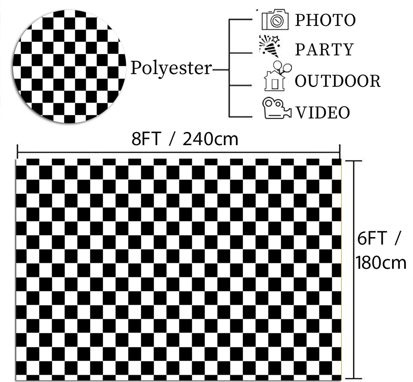 8X6Ft Cosplay Party Banner Checkered Flag Photography Backdrop White And Black Racing Checker Texture Grid Birthday Chess Board