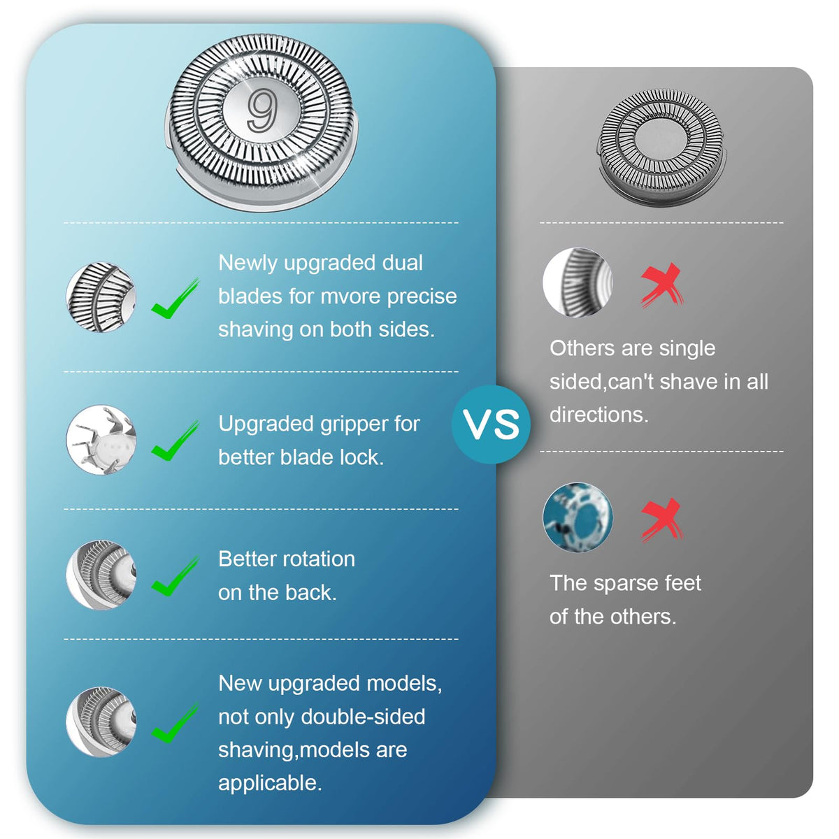 ?High Precision Cutting System?: The Blades Compatible With Philips Sh90 Replacement Heads Are Dual Precision Cutting System With Lift And Cut Technology. 360 Degrees Without Dead Ends.