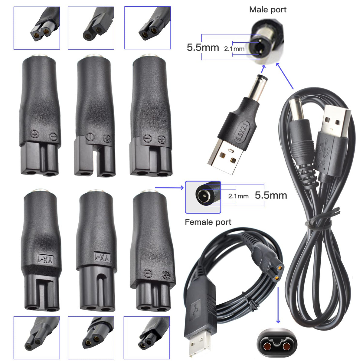 9 Pcs Replacement Power Cord 5V Charger Usb Adapter Suitable For Electric Hair Clippers, Beard Trimmers, Shavers, Beauty Instrum
