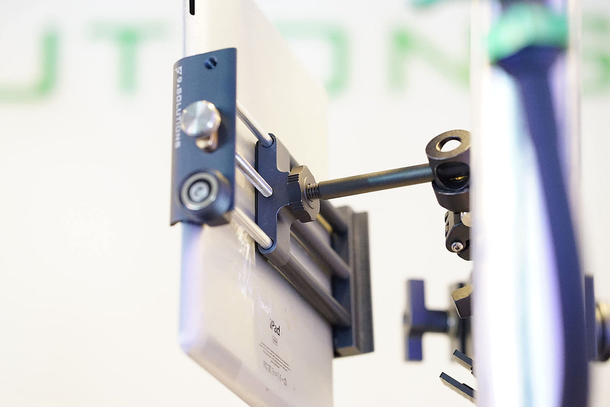 The Tablet Holder Is An Ideal Support Tool For The Media Production Environment With Its Multiple 1/4 -20 And 3/8 -16 Tapped Mounting Points On All Sides Which Enables It To Be Mounted From Any Of Its Sides Or Allows Peripheral Equipment To Be Placed Around It. It Features A Spring Loaded Jaw Which Enables Easy One Hand Placement And Retrieval Of The Tablet With Or Without A Protective Case. Its Easy Adjustment To Fit Most Sized Tablets On The Market Also Makes It Very Adaptive To Frequent Changing Tablet Sizes In A Production Environment. The Adjustment Knob Can Be Tighten Down To Add Additional Security If The Tablet Is Used In Vibrating Situations Like For Example In A Car. Its Lined With A Protective Non Slip Rubber Which Helps To Hold It Securely In Its Place.