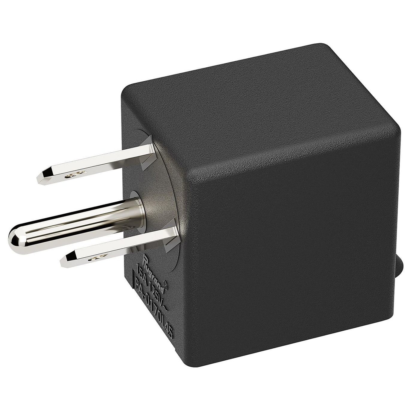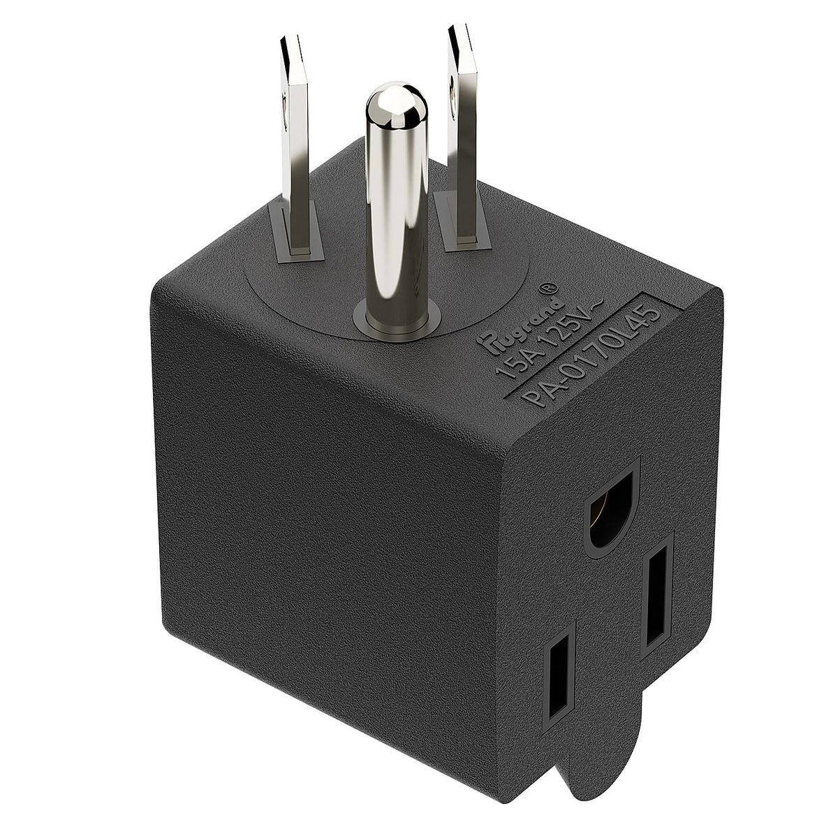 Plugrand Sku#.: Pa-0170L45 Black Color Space Saving Adapter, Ac Direction Changer Power Adapter, Molded Design. &Nbsp; Nema 5-15P Usa 3-Prong Male To Usa 3-Prong Female Right Angled (Downward Angled) Ac Power Adapter &Nbsp; 15Amp 250Volt. Support Max.1870Watt, The Inner Jump Wire Is 14Awg Copper Wire.