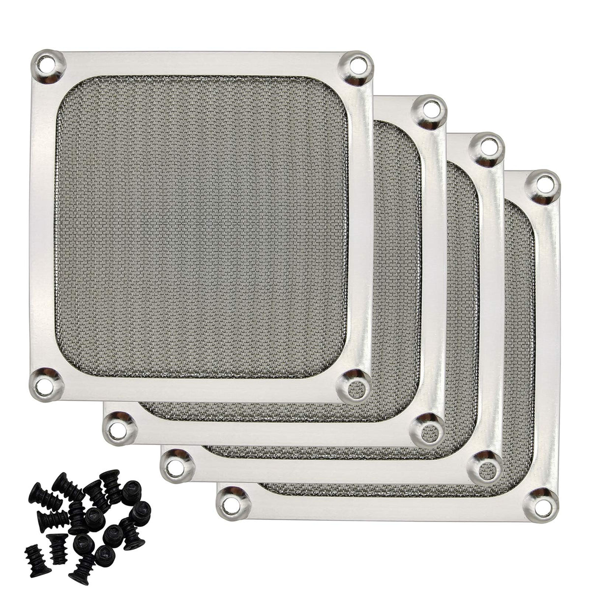 90Mm 92Mm Computer Fan Filter Grills With Screws, Aluminum Frame Ultra Fine Stainelss Steel Mesh 4 Pack (Silver)