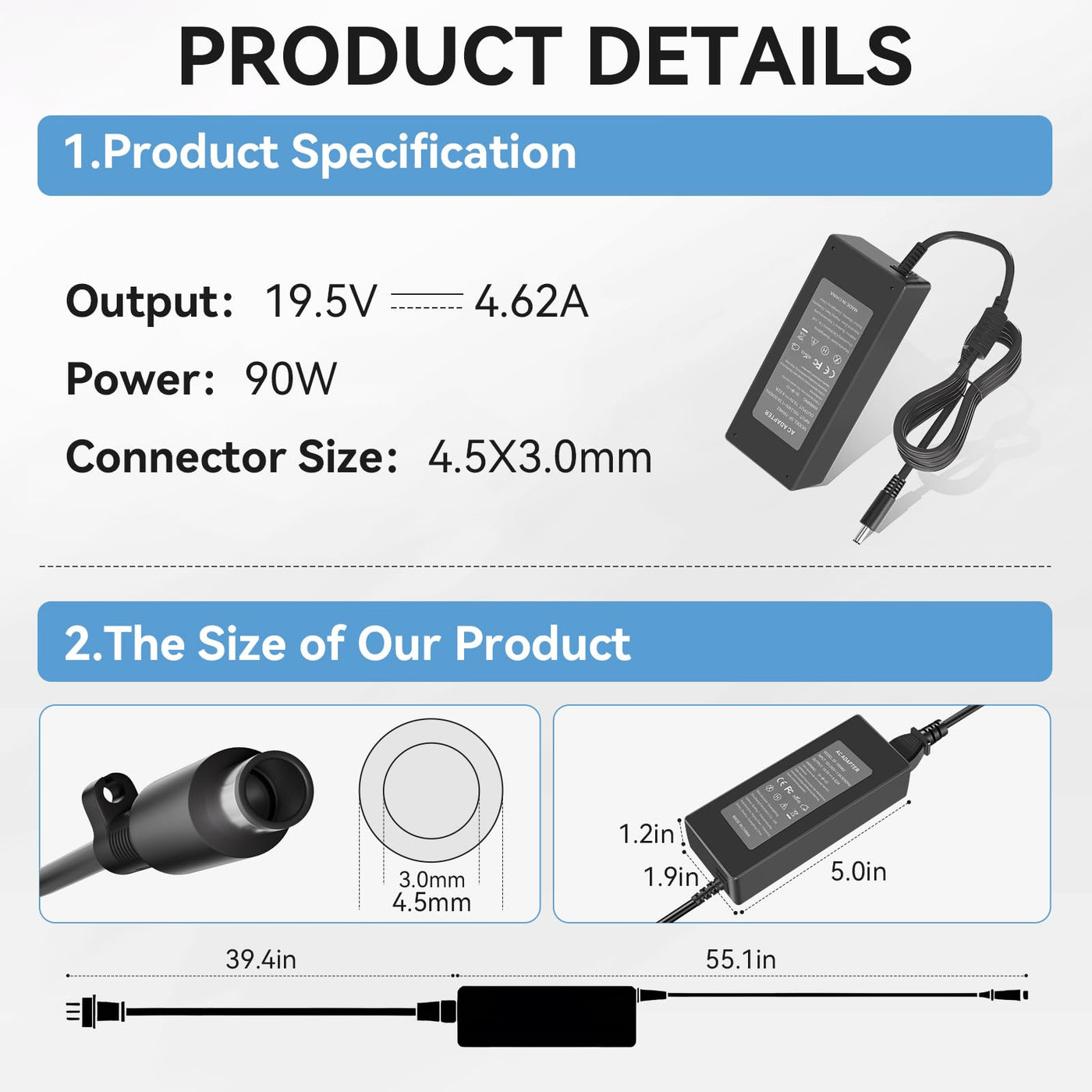 4.5X3.0Mm Laptop Charger For Dell Optiplex 9020 7050 7010 7040 3050 3020 3060 Micro Desktop Pc Power Supply Cord For Dell Optiplex Sff 7060 7070 Small Form Factor 90W Ac Adapter For Dell Optiplex Micro Desktop Pc Computer 65W Replacement Charger For Dell Optiplex Mff,Compatible With Dell Optiplex Micro Desktop/ Optiplex Small Form Factor/Optiplex Tower Series.