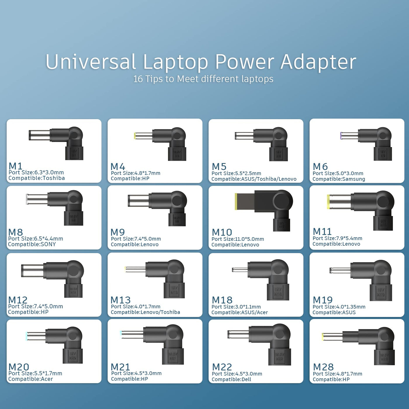 90W Universal Laptop Charger 15-20V Connectors Specification & Partial Applicable Models: M1: 15V 5A 6.3*3.0Mm Replacing Toshiba Tecra A6 A7 A8 A9 A10 F Satellite 1400 Series Satellite 1800 Series Ac Adapter Charger M3: 16V 4A 6.5*4.5Mm Replacing Sony Vaio Vgp-Ac19V39 Vgp-Ac19V47 Fujitsu Pencentra 130 200 Series Sony Vaio Pcg-4A1L Pcg-4B1L Pcg-4F1L Pcg-4F2L Pcg-4G1L Pcg-4G2L Pcg-4H2L Pcg-4J1L Pcg-4K1L Pcg-4L1L Pcg-4L2L Pcg-4L3L Pcg-4N1L Pcg-4N2L Pcg-4N3L Pcg-4N4L Pcg-4Q1L Pcg-4Q3L Pcg-4Q4L Pcg-4R1L Pcg-4R2L Pcg-51Al Pcg-531A Pcg-532A Pcg-5A1M Pcg-6B1L Pcg-6B2L Pcg-6C1L Pcg-6C2L Pcg-6C3L Pcg-6N2M Pcg-X505Zp Pcg-V505 Cto Sony Vaio Pcg-321A Pcg-322B Pcg-325A Pcg-431L Pcg-432L Pcg-441L Pcg-461L Pcg-462L Pcg-462M Pcg-481L Pcg-481M Pcg-491L Pcg-492L Pcg-500 Pcg-505 Pcg-551L Pcg-561L Pcg-571 Pcg-581 Pcg-582M Pcg-591L Pcg-661 Pcg-671L Pcg-672 Pcg-681L Pcg-682L Pcg-691L Pcg-705 Pcg-711 Pcg-833L Pcg-873M Pcg-881 Pcg-882L Pcg-883L Pcg-884L Pcg-885L Pcg-3102 Pcg-3112 Pcg-3122 Pcg-3192 Pcg-3212 Sony Vaio Sve141L11L Svf142C29L Svf14N13Cxb Svf14N13Cxs Power Supply Cord Charger M4: 18.5V 3.5A 4.9A 4.8*1.7Mm Replacement For Hp Pavilion Dm3 Dm3T Dm3Z Dv2000 Dv2000T Dv2100 Dv2200 Compaq Presario 300 305 900 1500 1510 2200 2800 B2800 Series Laptop Charger Ac Adapter Power Cord Supply M5: 19V 1.75A 2.37A 3.42A 4.74A 20V 5.5*2.5Mm Replacement For Asus A52F A53E A53S A54C A55A A55Vd A56C A56Ca A56Cm For Lenovo Ideapad N580 N581 N585 N586 Toshiba Satellite Series Laptop Charger Ac Adapter Power Cord Supply Jbl Xtreme 2 Extreme 2 Boombox Wireless Bluetooth Portable Speaker Boost Tv Soundbar Acer S2 H2 G2 Lcd Led Monitor 19V 19'' 20'' 22'' 23'' 24'' 25'' 27'' 29'' 32'' 34'' Lg Led Lcd 3D 720P 1080P Tv 4K Gaming Ultrawide Smart Led Monitor Charger Power Cord Supply M6: 19V 3.15A 3.16A 4.74A 5.0*3.0Mm Replacement For Samsung Gs6 Gt6 Gt7 Gt8 X05 Vm Gt Nt N110 N120 N130 N140 N145 N150 N210 N220 N310 N510 Nb30 Nc10 Nc110 Nc20 Nc215S Nf210 Nf310 P530 Q330 Q430 Q530 Qx410 Qx411 Ativ Book 2 Series Laptop Charger Ac Adapter Power Cord Supply M8: 19.5V 3.3A 4.7A 6.5*4.4Mm Replacement For Sony Vaio Pcg-F Pcg-Fr Sve 14 15 17 Vpccw Vpcee Vpcef 19.5V 4.7A 3.3A Series Laptop Charger Ac Adapter Power Cord Supply For Sony Vaio, Samsung Led Lcd Tv Monitor, 19V Lg Led Lcd Monitor, Widescreen Led Lcd Hd Tv M9: 19.5V 2.31A 3.34A 4.62A 7.4*5.0Mm Replacement For Dell Inspiron Xps Vostro Latitude Portege Chromebook Replacing Dell Latitude 7480 5480 7280 5580 7214 5404 5414 7414 2100 2110 2120 3150 3160 3190 3300 3330 3340 3350 3380 3450 3470 3480 3540 3550 3580 5250 5270 5420 5470 5500 6430U E5250 E5270 E5430 E5440 E5450 E5470 E5480 E5540 E5550 E5570 E5580 E6230 E6410 E6430 E6430 Atg E6430S E6440 E6510 E6520 E6530 E7240 E7250 E7270 E7280 E7440 E7450 E7470 E7280 7400 7404 Chromebook 11 3120 3180 3189 730-8301 Cb1C13 730-8302 Touchscreen 11'' 11.6'' Series Laptop Charger Ac Adapter Power Cord Supply M11: 20V 2.25A 3.25A 4.5A 7.9*5.4Mm Replacement For Lenovo Ibm Thinkpad T400 T410 T410S T420 T420S T430 T430S For Lenovo Thinkpad N100 L410 L412 L420 L421 L510 L512 L520 Series Laptop Charger Ac Adapter Power Cord Supply M12: 18.5V 3.5A 4.9A 7.4*5.0Mm Replacement For Hp Pavilion Dm1 Dm1Z Dm4 Dm4T Dm4X Elitebook 725 740 745 755 820 840 850 G1 G2 Series Laptop Charger Ac Adapter Power Cord Supply M13: 19V 20V 2.25A 3.25A 4.5A 4.0*1.7Mm Replacement For Lenovo Ideapad 110 100 100S 120 120S 500 500S 300 300S 310 320 320S 330S S145 Yoga 710 510 Flex 4 5 80T7 Adl45Wcc Pa-1450-55Ll Gx20K11838 Series Laptop Charger Ac Adapter Power Cord Supply For Lenovo Thinkpad X1 Carbon 1St 2Nd 3Rd 4Th Generation Thinkpad X1 Yoga 1St Generation Yoga 2 11 11E 12 13 730-15 T T431S T440 T440P T440S T450 T450S T460 T460S T470 T470S T550 T560 T570 Tp25 X X240 X240S X250 X260 X270 Z Z50 Z50-70 Z50-75 Z70 Z70-80 Series Laptop Charger Ac Adapter Power Cord Supply M18: 19V 2.1A 3.42A 3.0*1.0Mm Replacement For Acer Chromebook Aspire Asus Zenbook Acer Chromebook 11 13 14 15 N7 R11 C731 C731T C731-C8Ve Cb311-7H N16Q13 Cb3 Cb5 A13-045N2A N15Q9 C738T N15Q8 Cb3-532 Cb3-431 Cb3-131 Pa-1450-26 C730 C730E C731 C731T C735 Cb3-111 Cb3-131 Cb3-132 13 C810 Cb5-311 Cb5-311P 14 Cb3-431 15 Cb3-531 Cb3-532 R11 R13 R15 C738T Cb5-132T N15Q8 N15Q9 N16P1 N16Q13 Series Laptop Charger Ac Adapter Power Cord Supply M27: 20V 2.25A 3.25A 4.5A 11*5.0Mm Square Replacement For Lenovo Thinkpad X1 Carbon T440 E431 Thinkpad X1 Carbon 344428U Ultrabook 344425U N3N25Uk N3N72Uk N3N2Suk N3N82Uk 34442Hu 3444Azf 34442Hf 3444Azu 3443Cto 34442Gu 344456U 3444B8U 34442Du 3444Bdu 3444Feu 3444Cuu 3444B7U Ultrabook Power Supply; For Lenovo G410 G500 G500S G505 G505S G510S G700 B5400; For Lenovo Thinkpad X240 E440 E540 Thinkpad Edge E431 E531 S431 T431S Ac Adapter; For Lenovo Idea Pad S210 S500 S510P U430 U430P U530 Touch; For Lenovo Idea Pad Yoga S1 11 11S 13 2 Pro; Flex 14 15 15D Laptop Charger