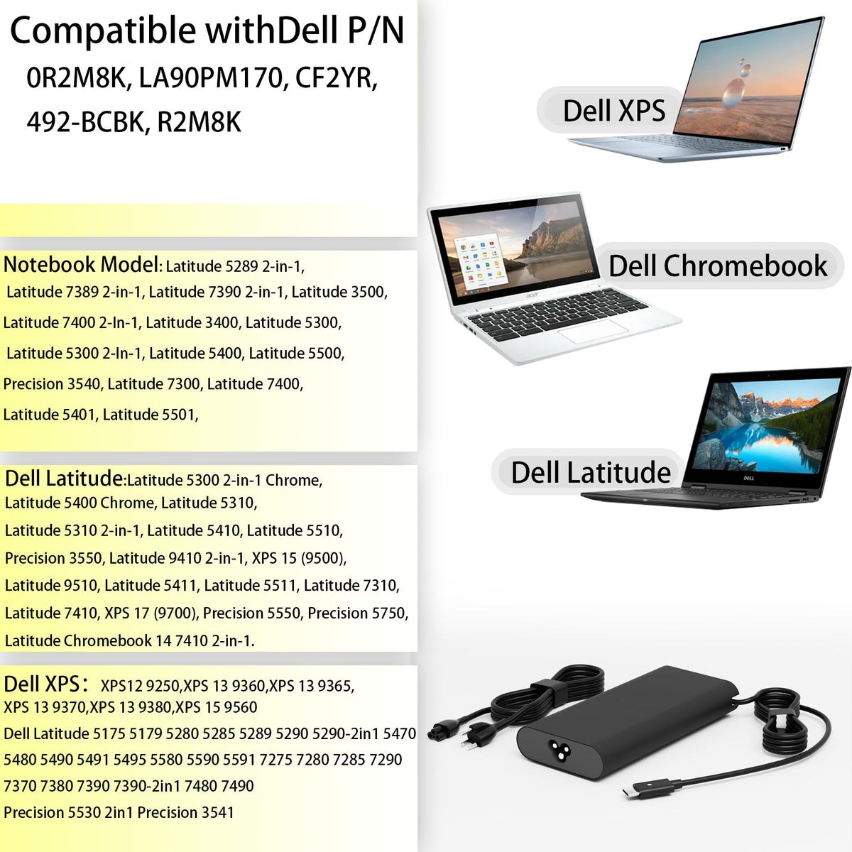 90W Usb C Charger For Dell Laptop,Ac Adapter For Dell Latitude 7300 5420 3400,5289,5300,7420, 5400 Xps 15 13 12 Precision 5530 2