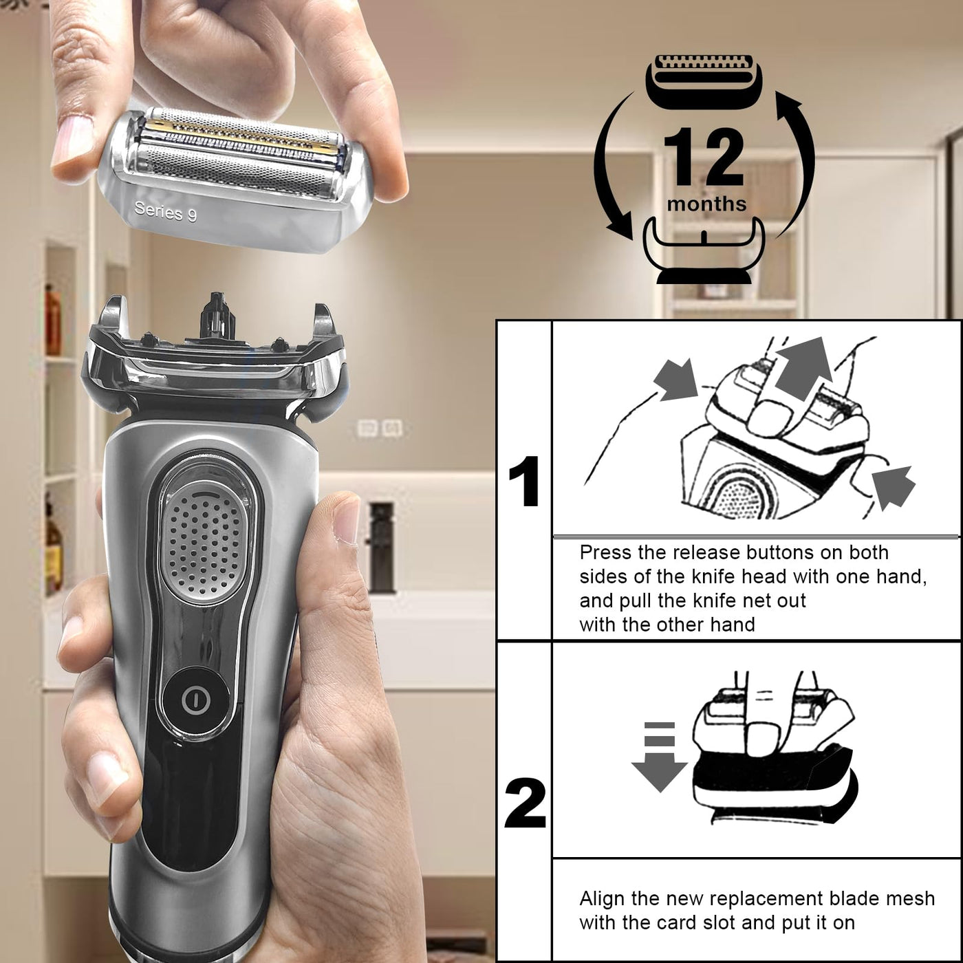 92S Series 9 Electric Shaver Replacement Head Compatible With Braun Series 9 Electric Razors 290Cc, 9291Cc, 9370Cc, 9293S, 9385Cc, 9390Cc, 9330S, 9296Cc Shavers