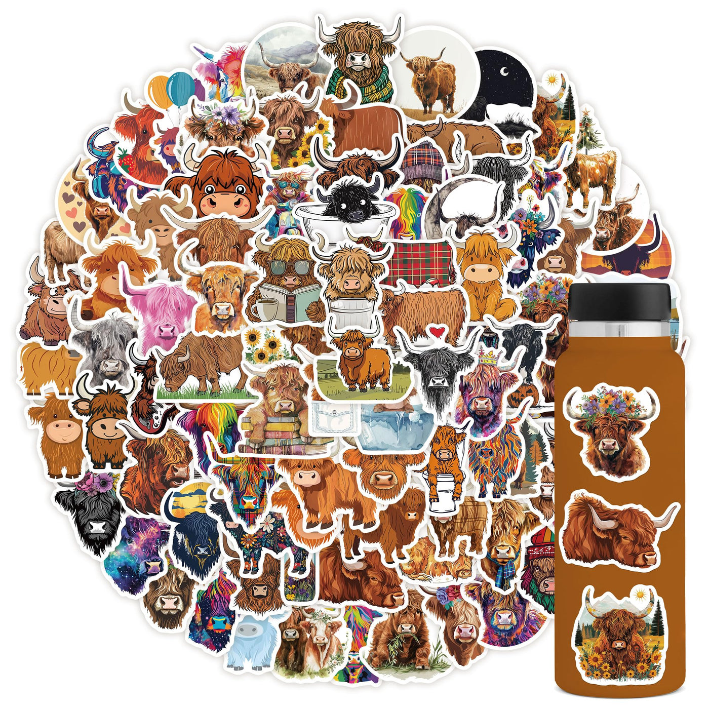 96 Pcs Highland Cow Stickers,Cool Highland Cow Stickers For Boys Girls Teens,Unique Designed Cartoon Vinyl Waterproof Aesthetic Stickers For Water Bottles Laptop Computer Skateboard