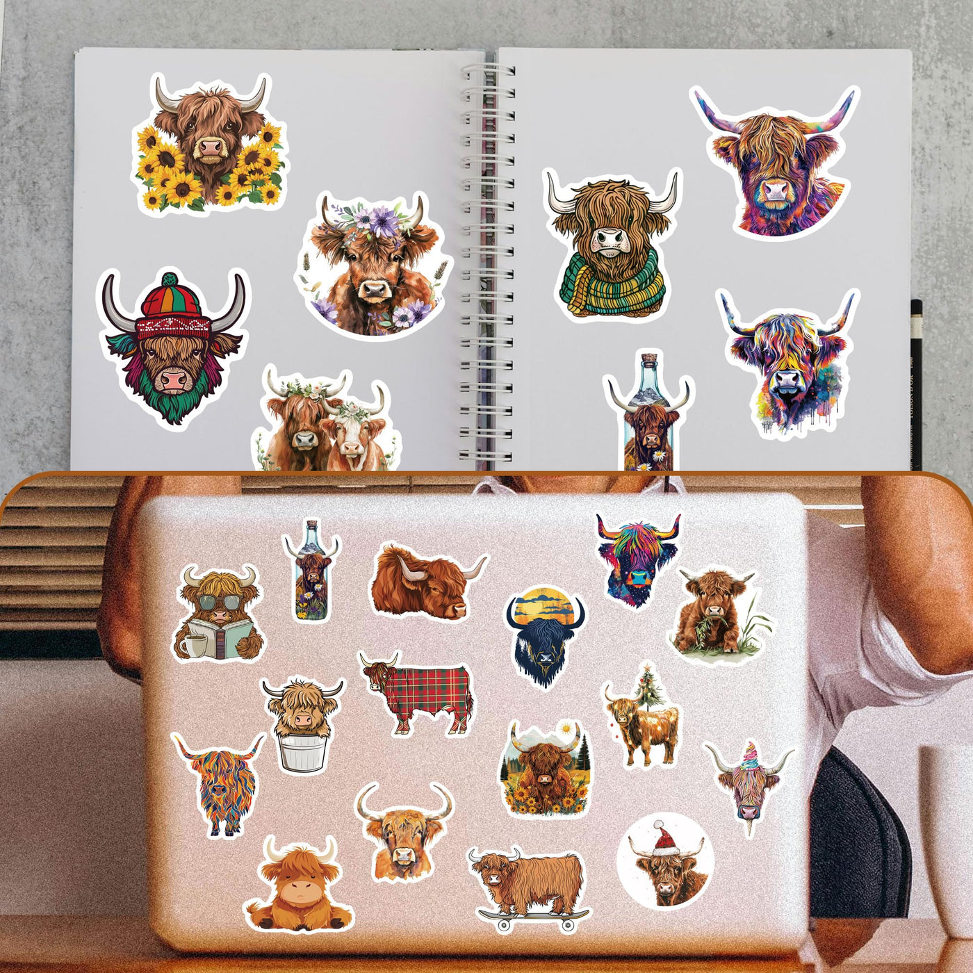 Q: Can these stickers be used on water bottles?A: Yes, these Highland Cow Stickers are designed to be waterproof and can be used on water bottles, laptops, skateboards, and more.