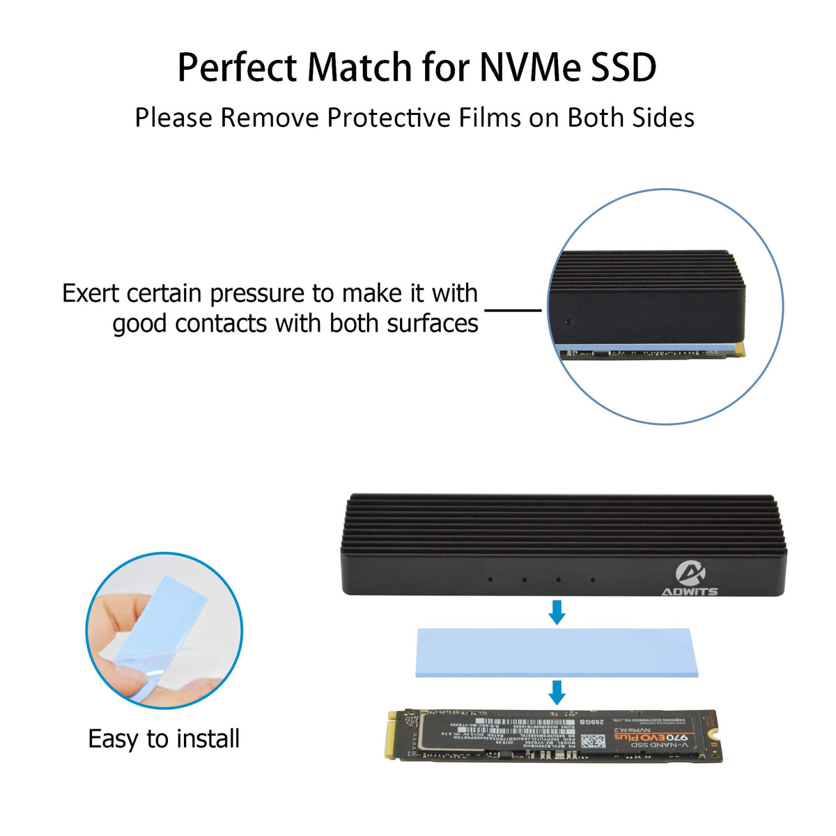 A Adwits [ 12-Pack ] Thermal Conductive Silicone Pads With 6.0 W/Mk Thermal Conductivity These Thermal Conductive Silicone Pads Are Specially Designed To Transfer Heat Through The Gap, Effectively Transferring The Heat Of The Heat-Generating Component To The Heat Sink, And Has Thermal Conduct Electrical Insulation Properties, And The Product Is Also Has Viscosity, And The Application Is Safe And Simple Easy Installation 1. Remove The Old Heat-Conducting Material, Clean The Surface 2. Determine The Contact Position, Select The Best Matching Thickness And Cut The Appropriate Size 3. Tear Off The Protective Films On Both Sizes 4. Exert Certain Pressure To Make It With Good Contacts With Both Surfaces Package Content 20X67X0.5Mm X4 20X67X1.0Mm X4 20X67X1.5Mm X4