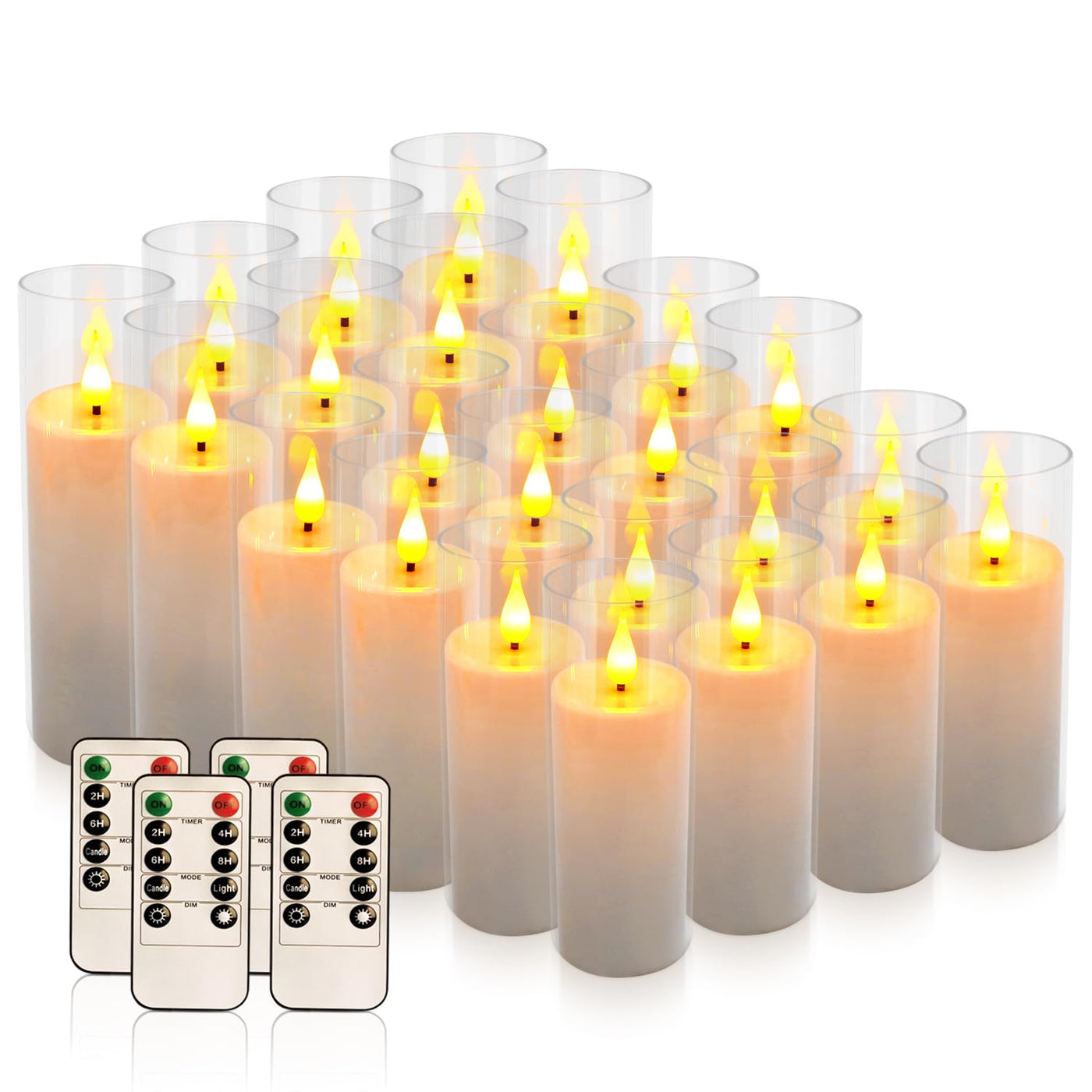 24-Pack Flameless Led Candles - White Transparent Dimmable Electric Pillar Candles With Remote & 8H Timer. Boasting A Realistic Flicker Effect, These Candles Are Perfect For Weddings, Home Decor, Halloween, Christmas, Thanksgiving, New Years Eve Parties, Anniversary Dinners, Baby Showers, And Romantic Date Nights. Whether Youre Creating A Cozy Ambiance For A Family Gathering, Adding A Touch Of Elegance To A Formal Event, Or Setting A Spooky Mood For A Themed Party, These Flameless Candles Offer Safe, Hassle-Free Illumination