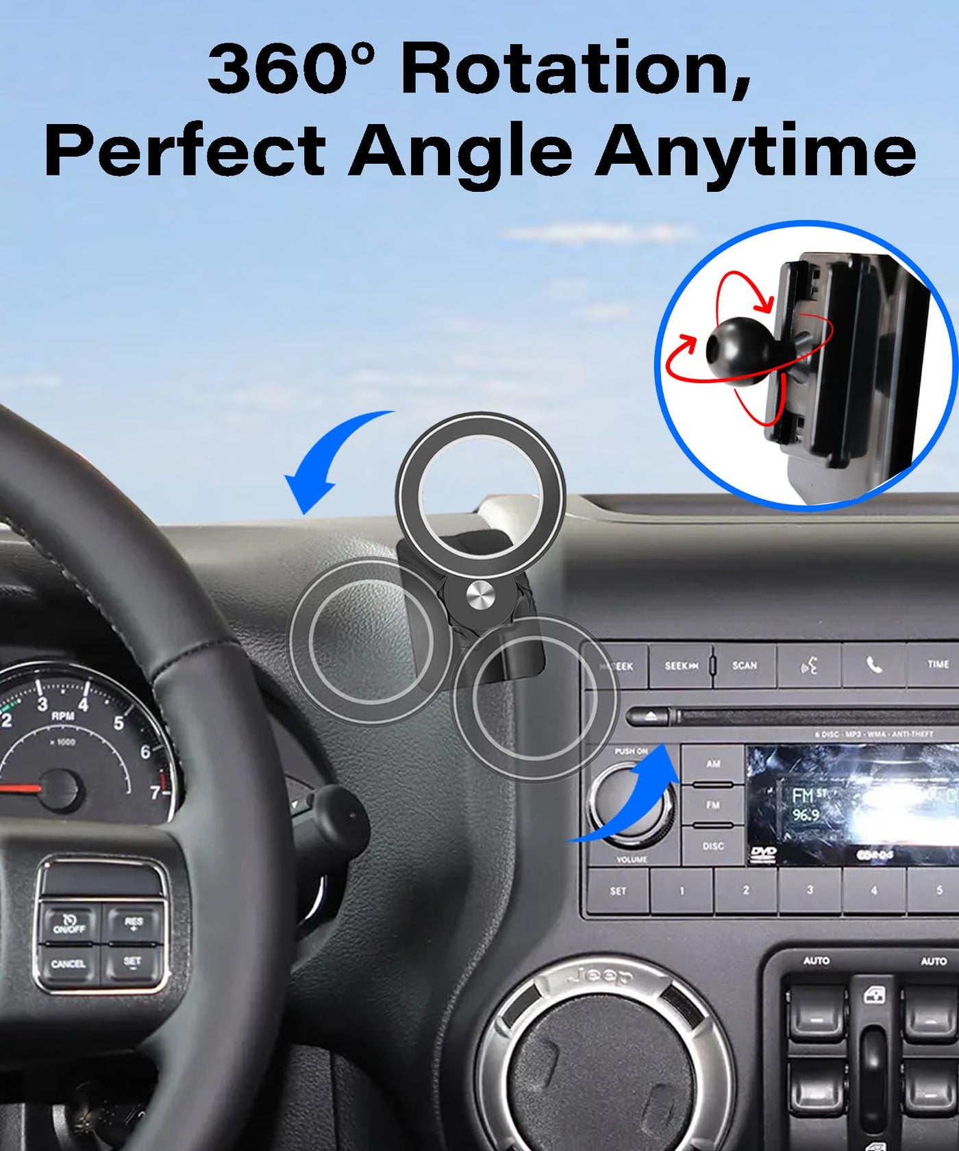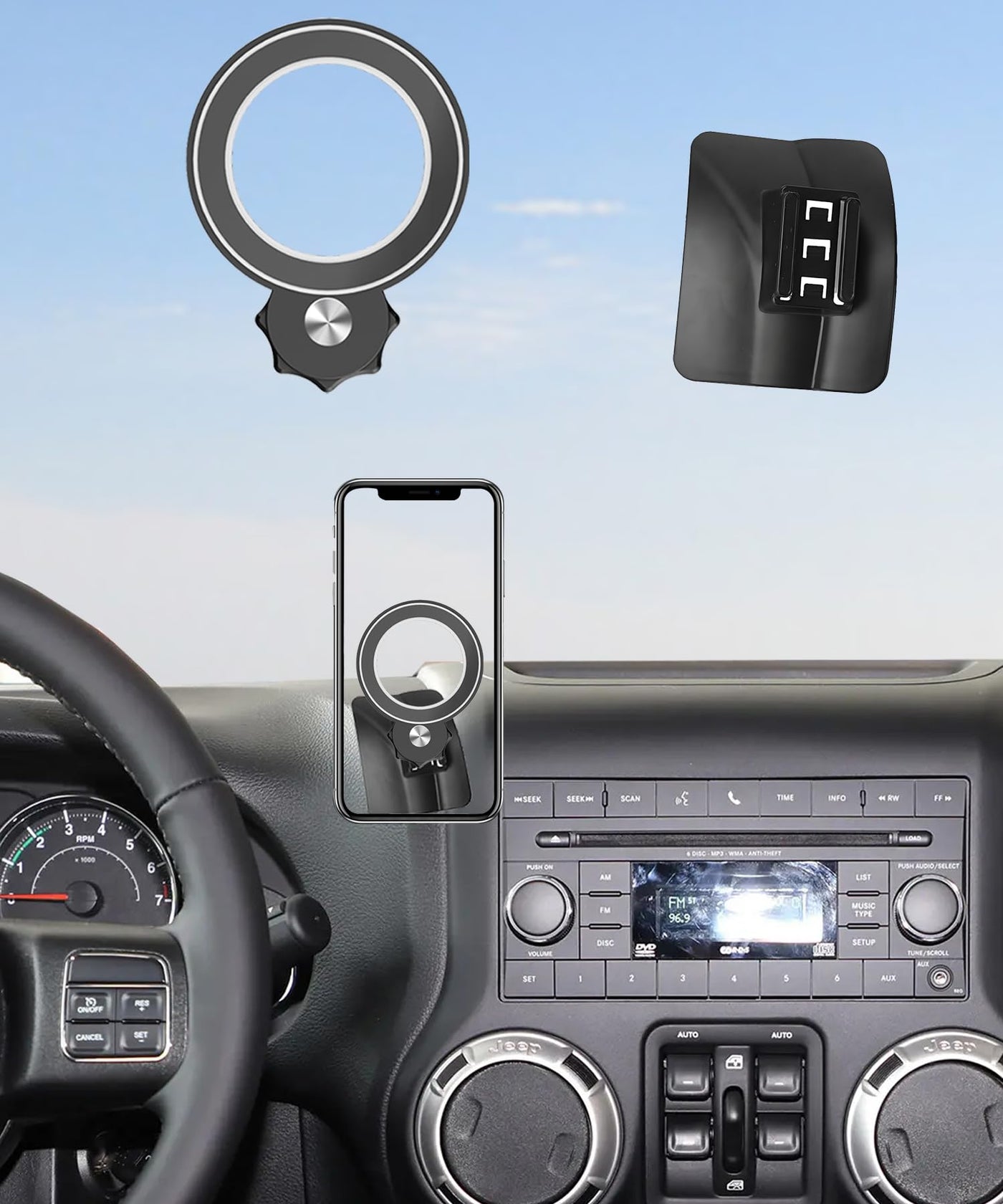 This Innovative Phone Mount Designed Specifically For 2011 2012 2013 2014 2015 2016 2017 Jeep Wrangler Jk Jku. This Versatile Mount Offers Seamless One-Hand Operation And Robust Magnetic Attachment, Ensuring Your Phone Stays Firmly In Place During Every Journey. Compatible With Iphone Series 12 Through 16 And Magsafe Cases, Plus A Wide Range Of Other Smartphones Using The Included Metal Rings. The Mount Features 360-Degree Rotation Capability For Optimal Viewing Angles And Comes With Two Metal Rings For Non-Magsafe Devices. Its Sturdy Construction And Secure Mounting System Perform Reliably Across Various Driving Conditions - From Rough Terrain To Smooth Highways. The Sleek Design Integrates Perfectly With Your Wrangler Jk Jku Interior While Maintaining Easy Access To Your Vehicles Touch Screen. Installation Is Straightforward, And The Mounts Practical Design Ensures It Wont Interfere With Your Vehicles Functionality. Package Includes The Mount And Two Metal Rings For Universal Compatibility. This Thoughtful Solution Keeps Your Phone Within Reach While Maintaining Focus On The Road.
